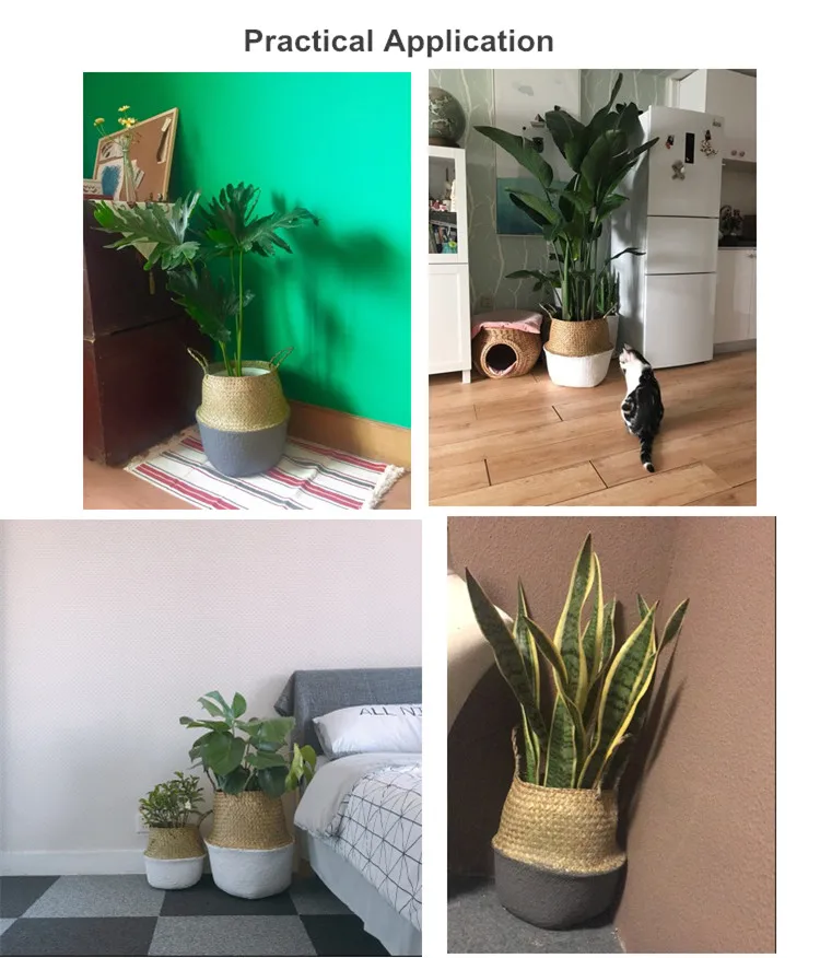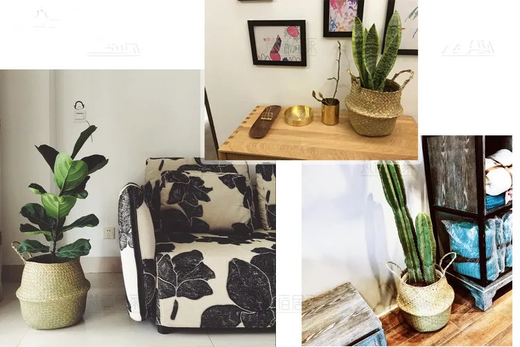 Бамбуковый плантатор корзины для хранения грязного белья солома лоскутное шитье плетеная ротанг водорослей живот садовый цветочный горшок складная корзина ручной работы