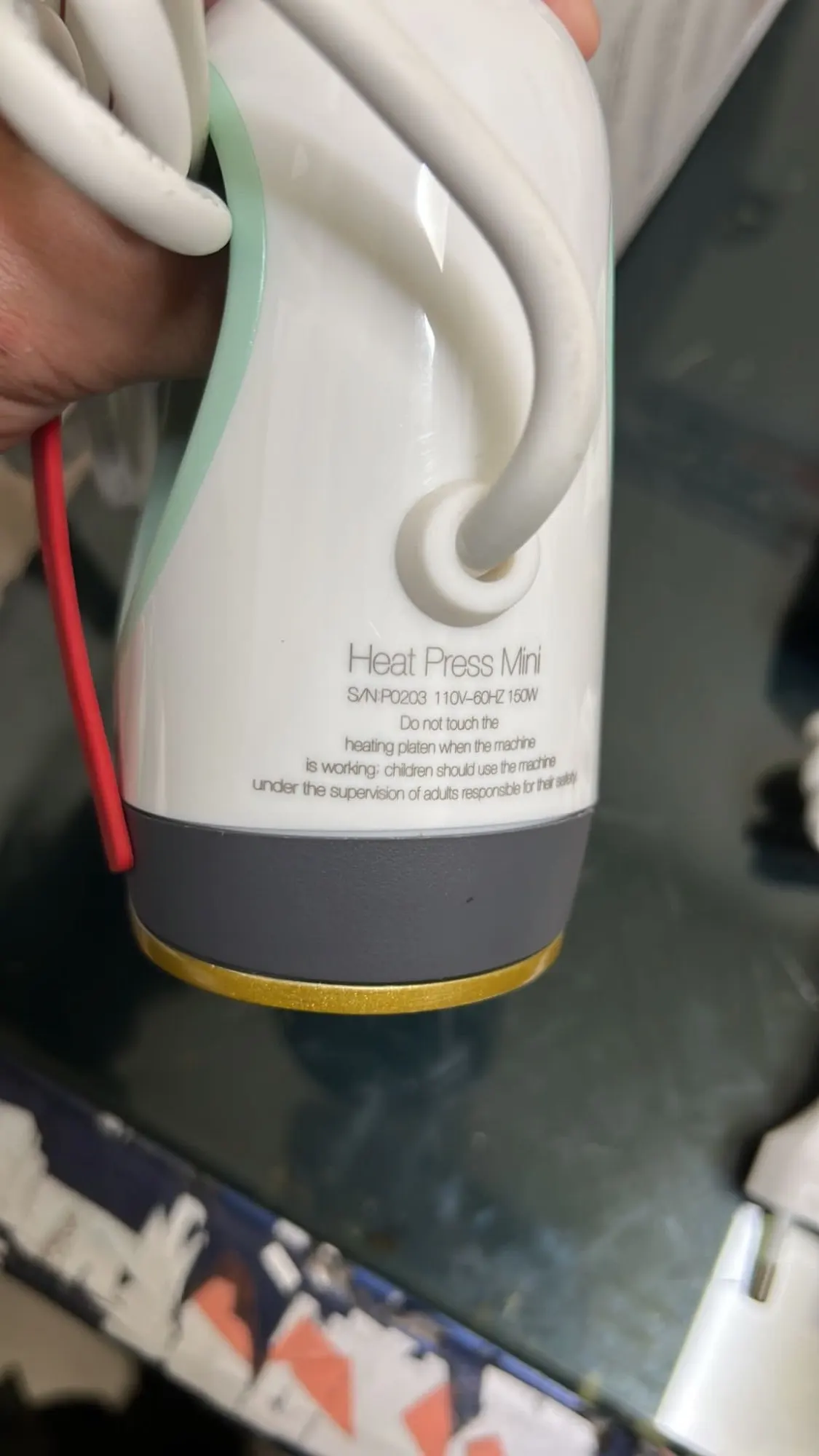 Я думаю, что мини-пресс уже использовался, потому что он поцарапан под подошвой