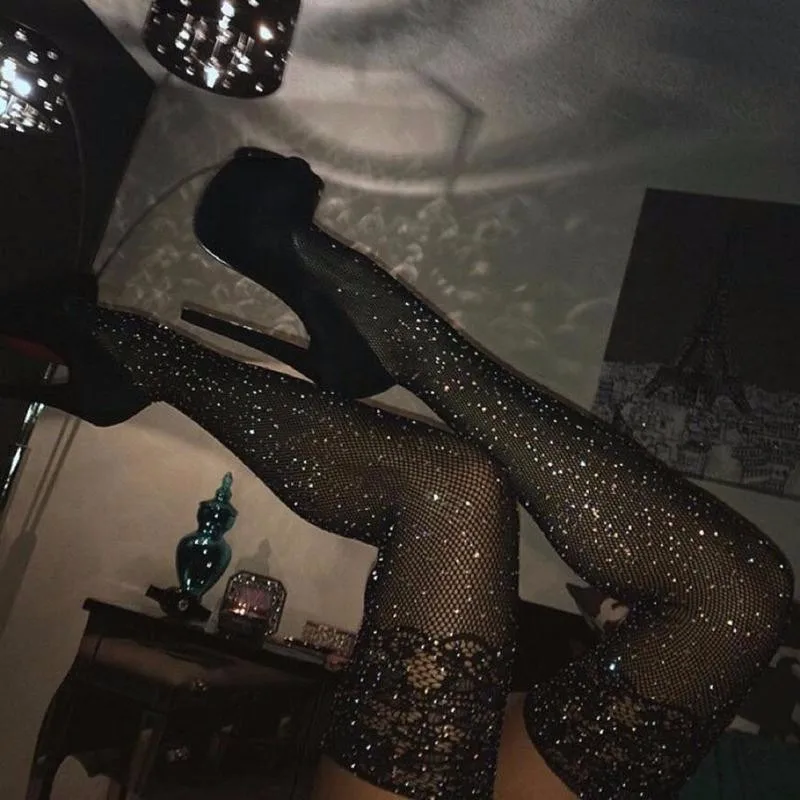 Женские длинные носки, сексуальные женские чулки стразы, блестящие ...