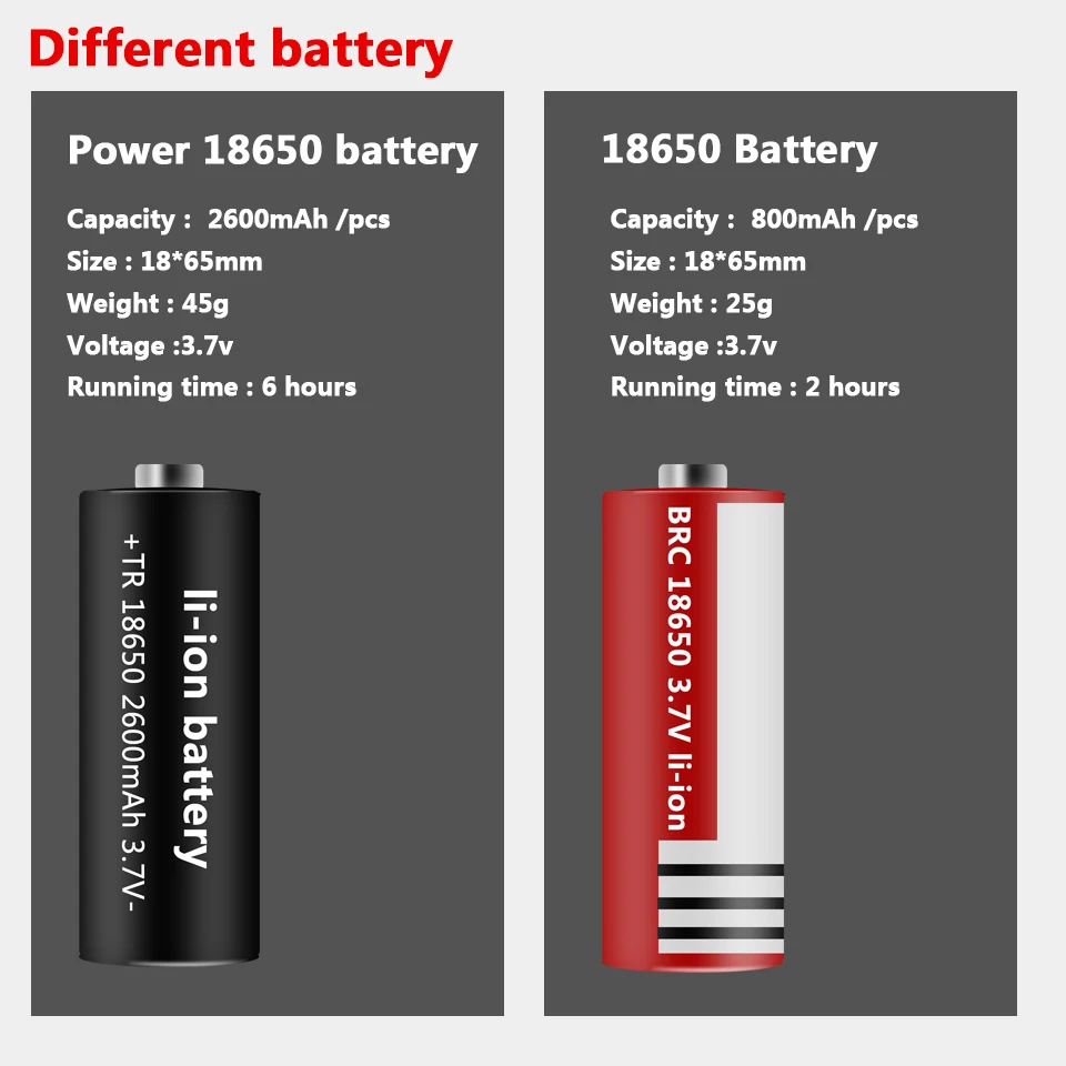 Батарея отсек: 2 режима (красный светильник-красный светильник свет, мигающий свет)• Срок службы: 100000 часов• Цвет: черный• Излучаемый Цвет: белый светильник• Линзы: выпуклая линза• Материал корпуса: прочный авиационный алюминий• Батарея: перезаряжаемая батарея 3*18650Зарядное устройство:• Вход: AC110-220V 47-63 Гц• Выход: 3,7 V; 1AБатарея• Качество: 3 шт.• Материал: литий-ионный аккумулятор• Напряжение: 3,7 V