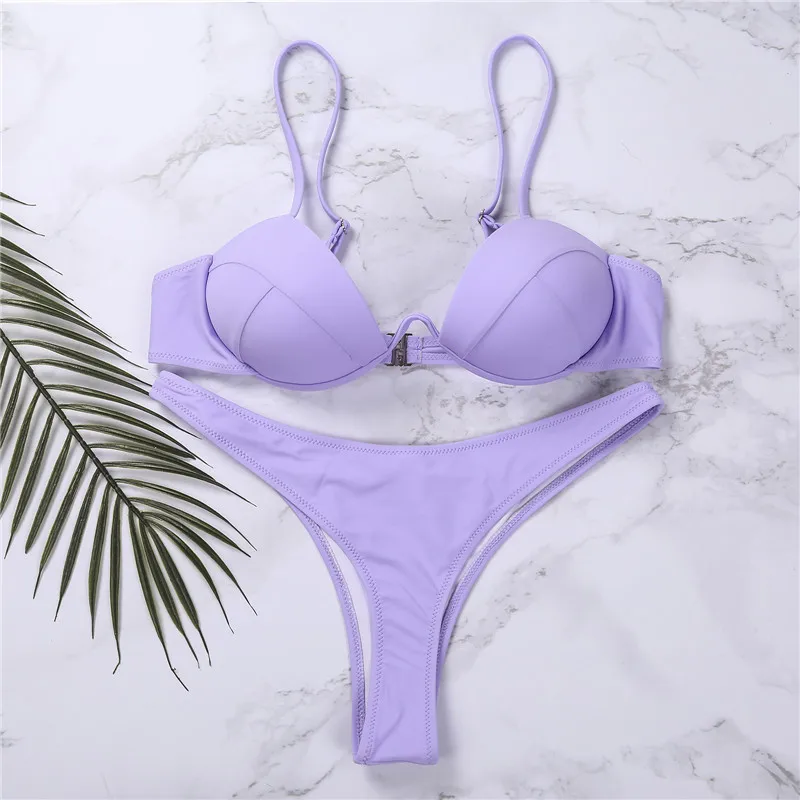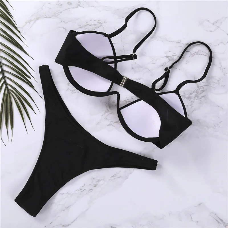 2021 Новые Сексуальные женские комплекты бикини пуш-ап однотонные черные белые пляжные купальники с глубоким вырезом для женщин с V-образным вырезом Мягкий купальный костюм Takniki