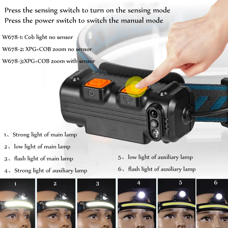 2 шт. COB светодиодный датчик фары USB Перезаряжаемый встроенный аккумулятор 18650 мини-фонарик фонарь фара маленький светодиодный фонарик