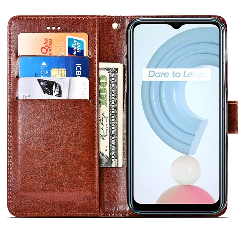 Винтаж кожаный флип чехол для Realme C11 2021 C20A C21Y C25S Чехол-портмоне на сотового телефона Realmi Narzo 30 Pro 5G 30A Etui