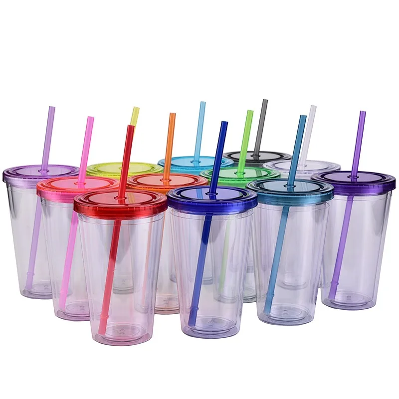 Акриловый прозрачный стакан с двойными стенками, изолированная пластиковая чашка, многоразовая кружка для холодных напитков с соломинкой, 16 унций