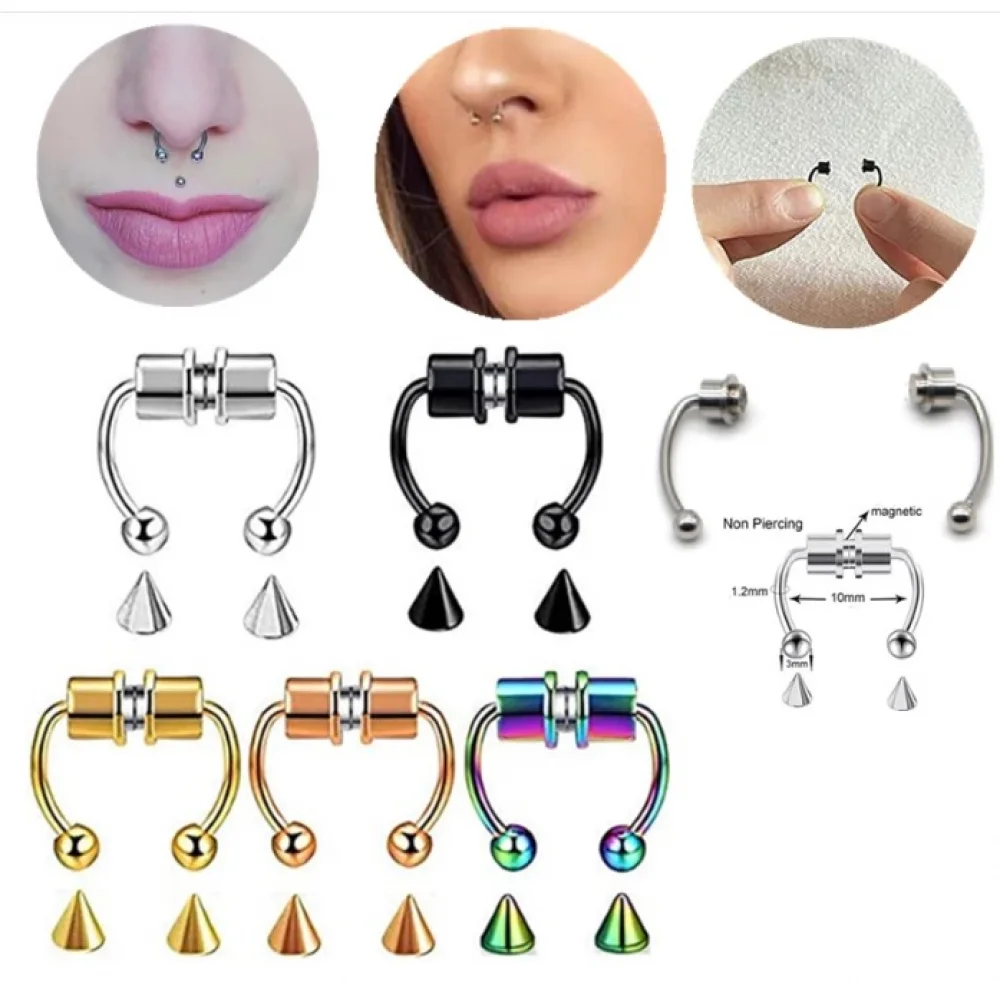 Ложный обруч для носа легче надевать или снимать. Это ваш лучший выбор. Если вы не хотите делать отверстие в лице, это очень подходит для повседневной носки.