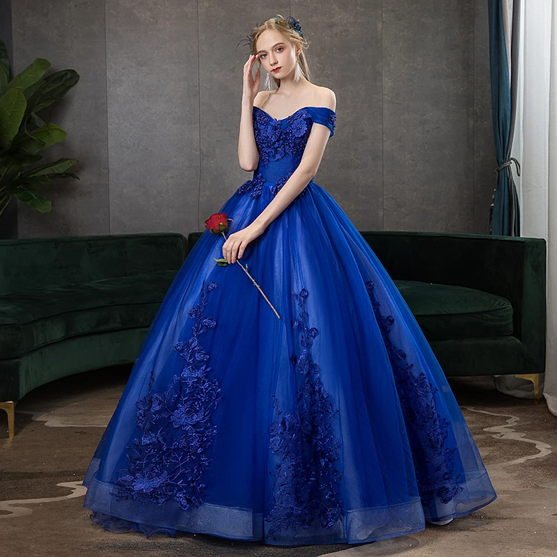 Роскошные платья для девушек Королевский синий вечерний бальный наряд с открытыми плечами кружевное вышитое винтажное платье для девушек