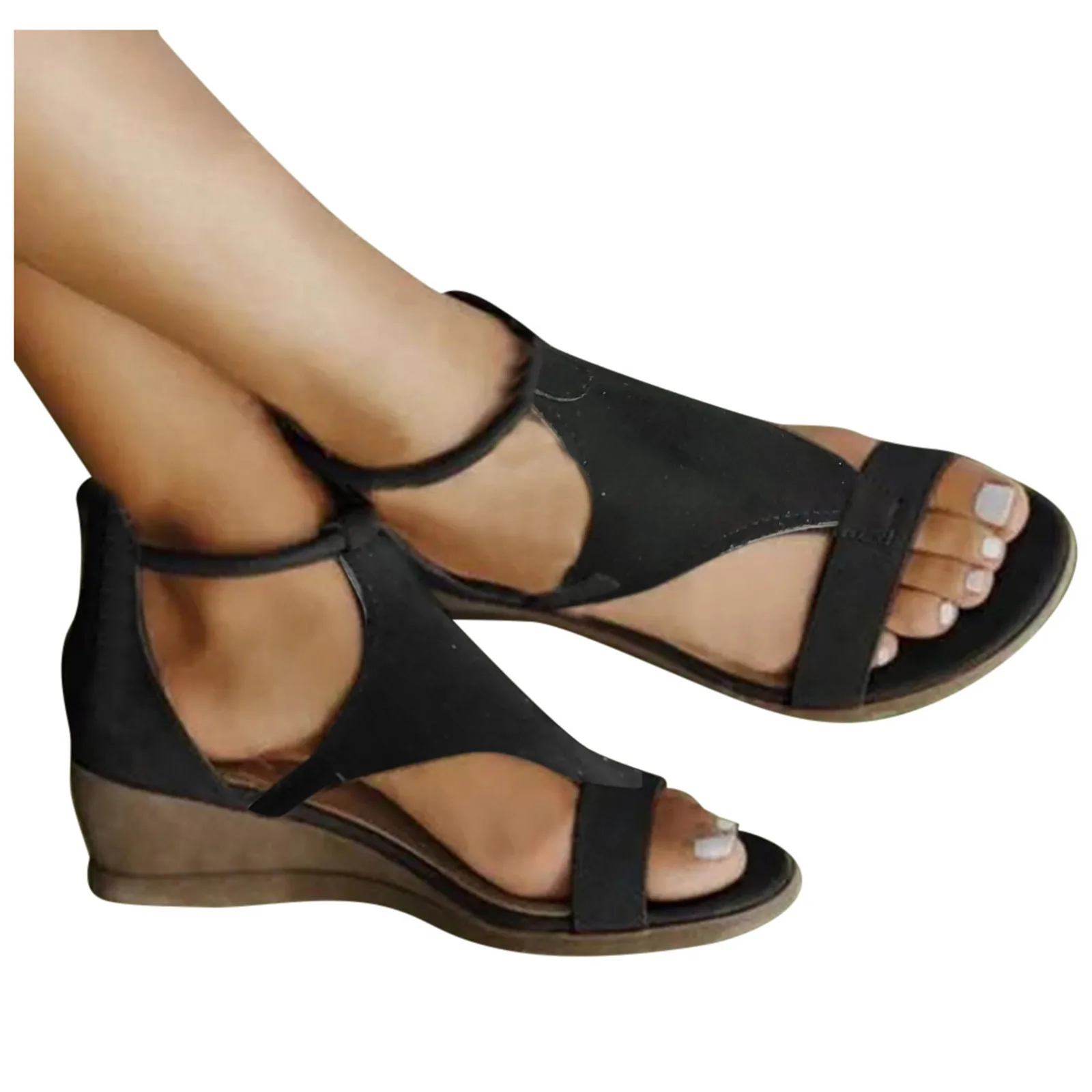 Сандалии Женские однотонные на платформе, повседневные босоножки на молнии, туфли с открытым носком, высокий каблук, лето 2021
