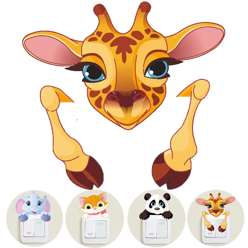 С рисунками животных из мультфильмов для выключателя слон кошка панда Жираф светильник переключатель Стикеры Remoable стены стикер украшение дома