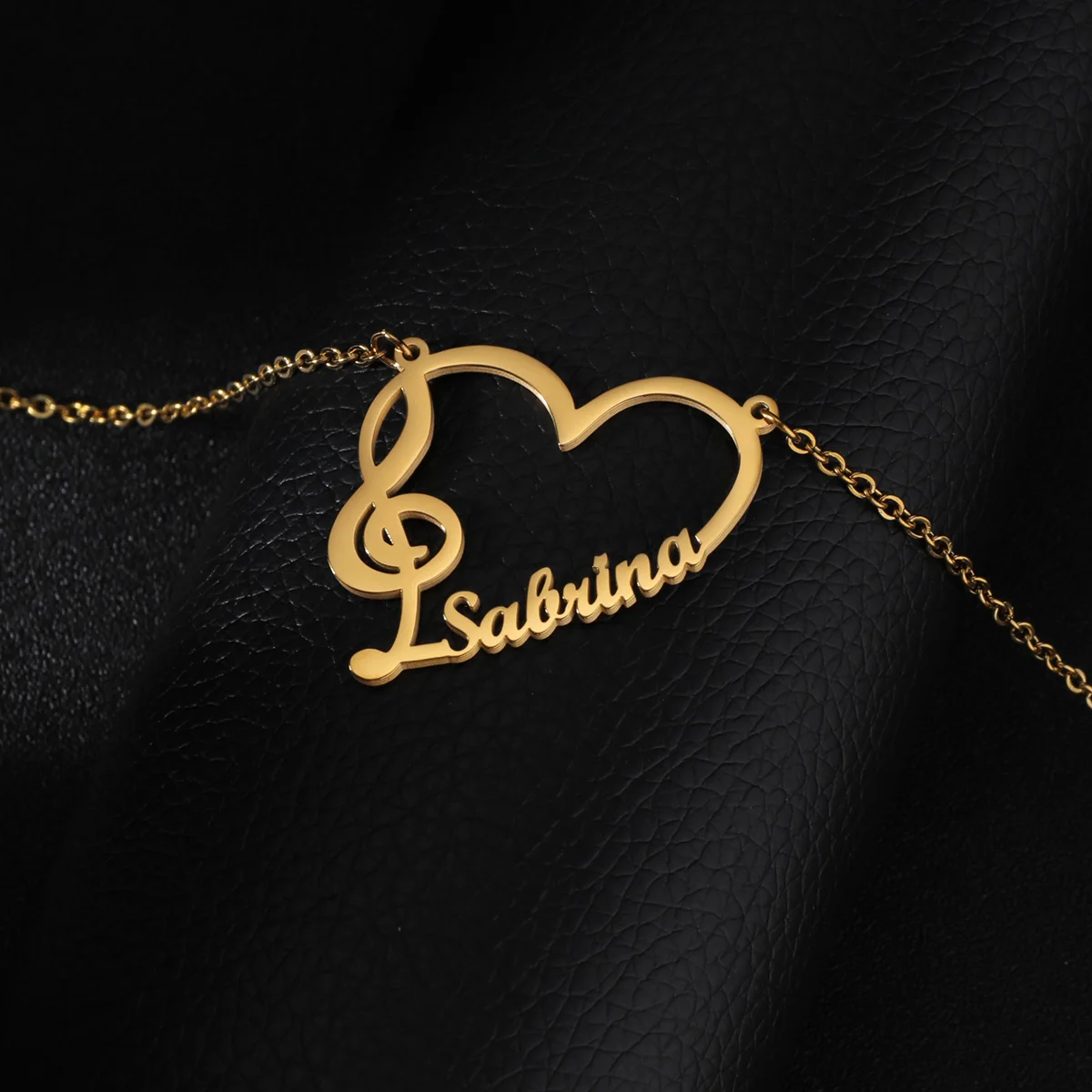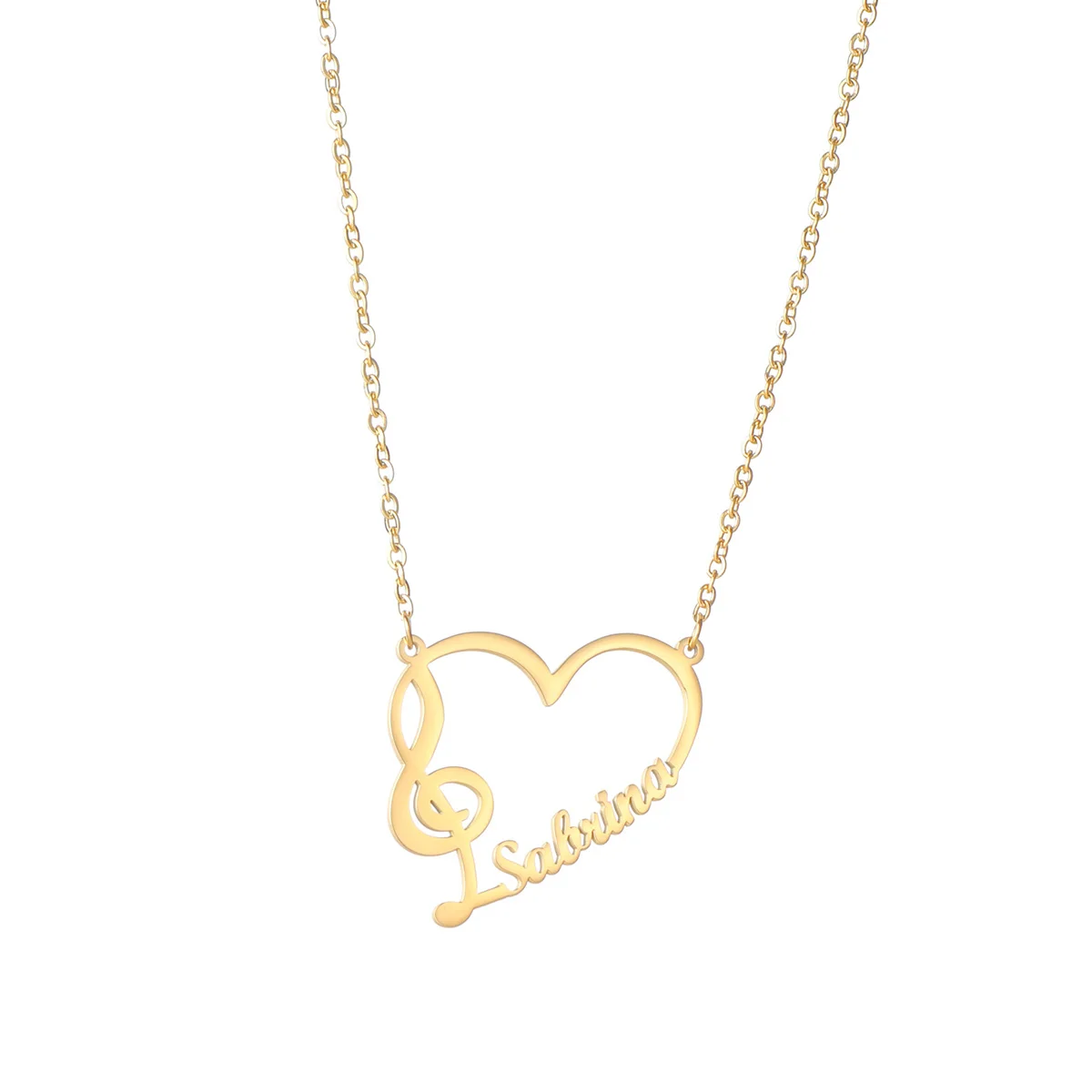 FeatureLink chain, Treble Spectrum Symbol necklace, heart name necklace