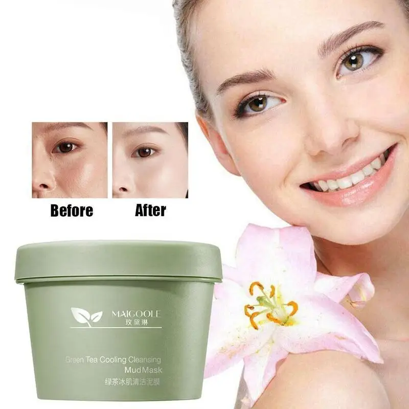 Маска для лица с зеленым чаем, грязевая маска для мышечных мышц, маска для глубокого очищения, удаление усадки и продуктов, уход за кожей, черные точки, поры F7N4, 100 г