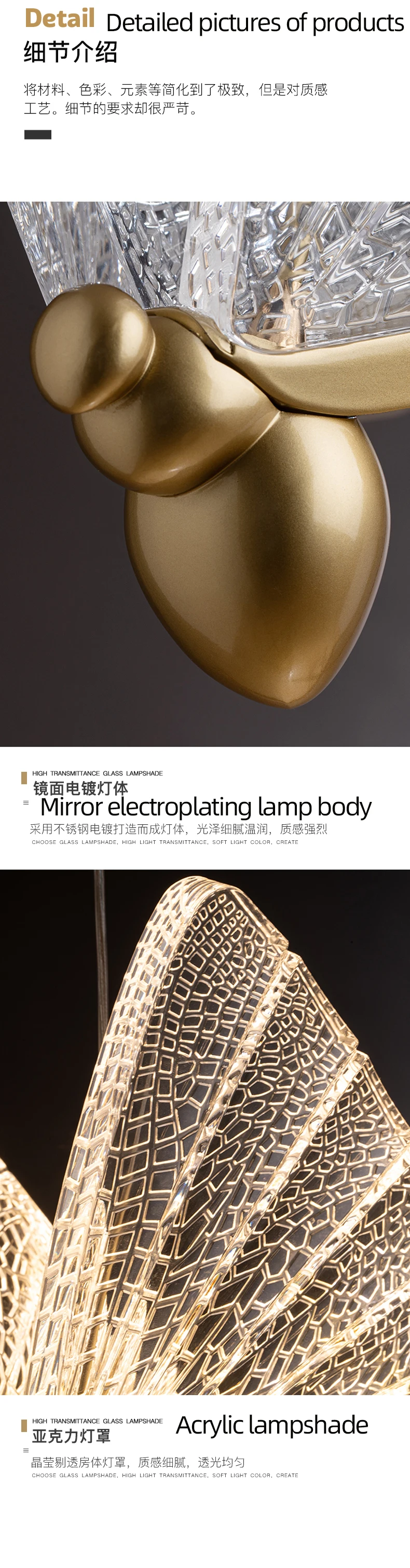 Современная акриловая люстра-бабочка для виллы, роскошный прикроватный светильник для столовой, спальни, гостиной