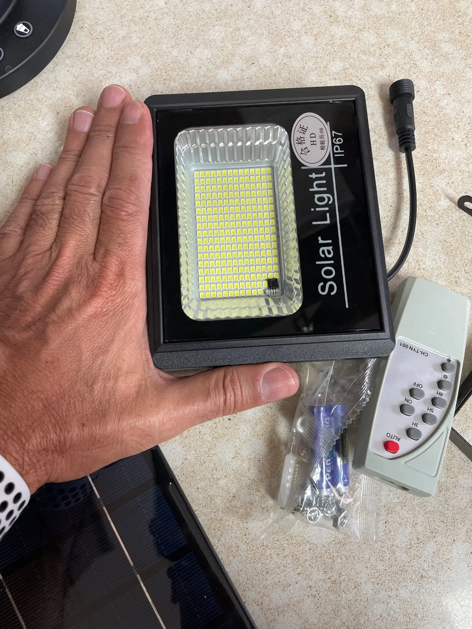 package arrived. will check how long it can keep the panel 100% light on