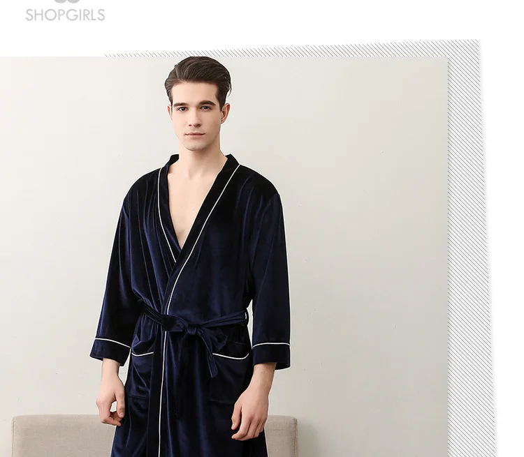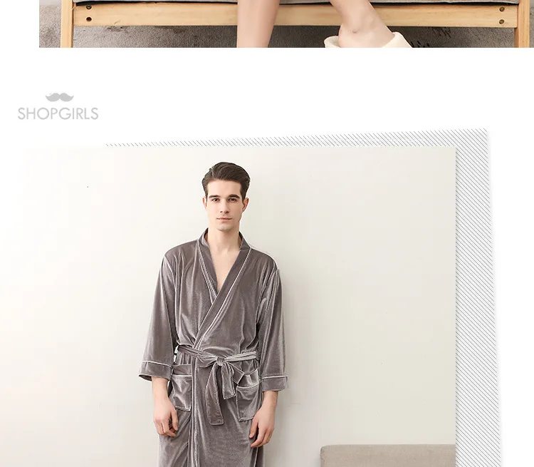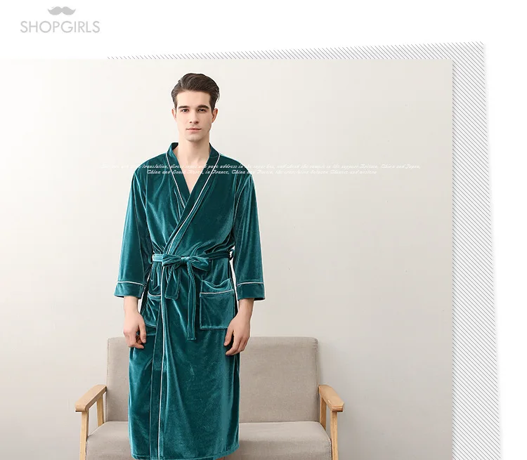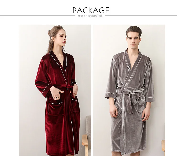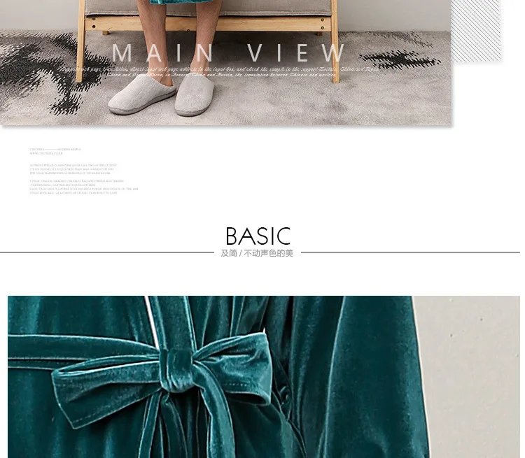 Твердое Золотое женский вельветовый халат с рукавом три четверти с v-образной горловиной осень-зима пара, одежда для сна, с поясом, размера плюс, домашняя одежда