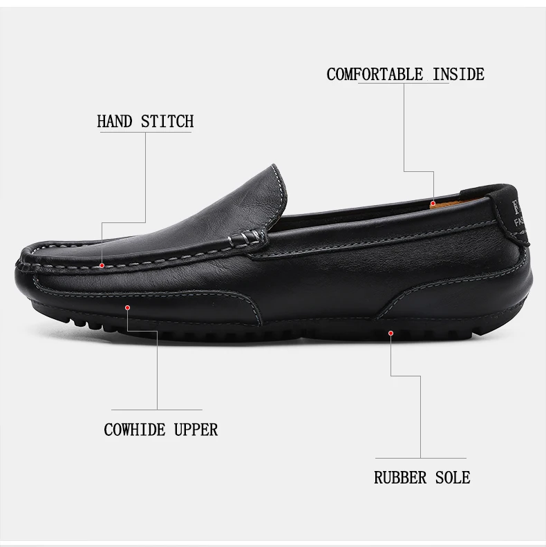 Туфли мужские из натуральной кожи, лоферы, дышащие, без застежки, П...