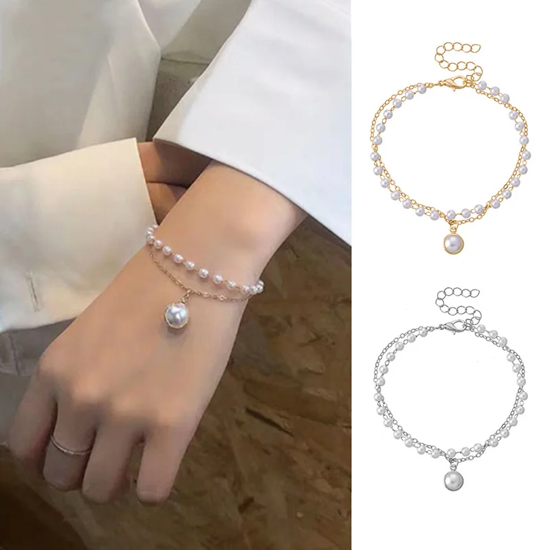 Модное жемчужное ожерелье-чокер, милая двухслойная цепочка, кулон-браслет, Подвеска для женщин, ювелирные изделия, браслет, кулон, подарок для девушки, новинка