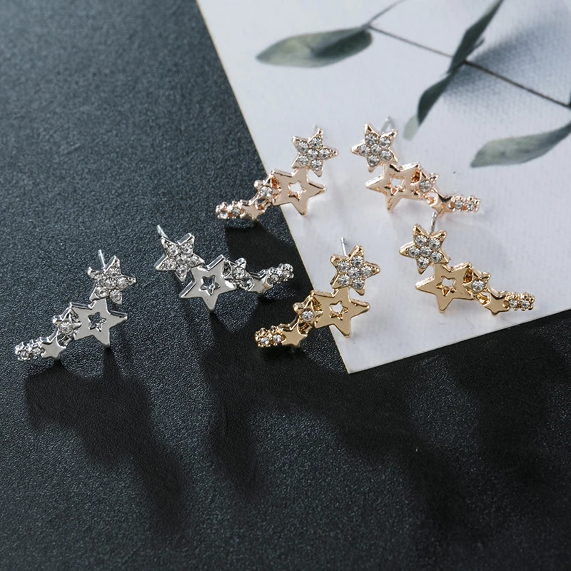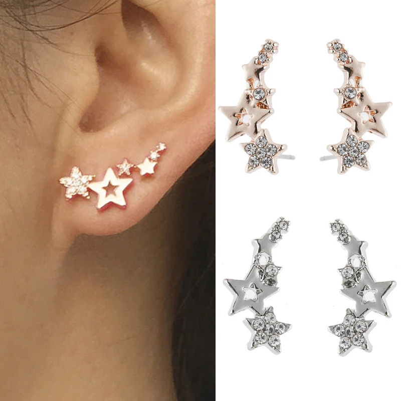 Блестящие стразы серьги-гвоздики "Звёзды" для женщин розовое золото...
