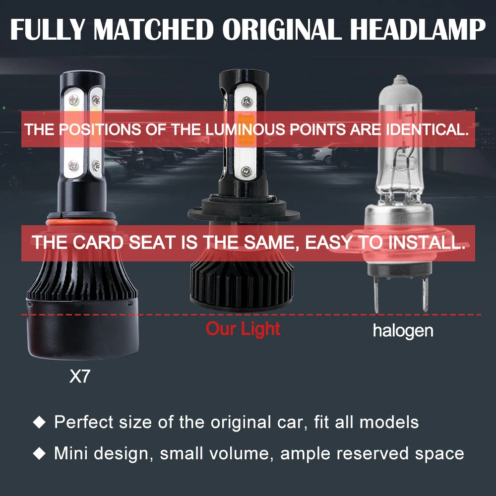 Лампы для автомобильных фар H7 LED 12000LMпара, 2 шт., мини-лампы д...