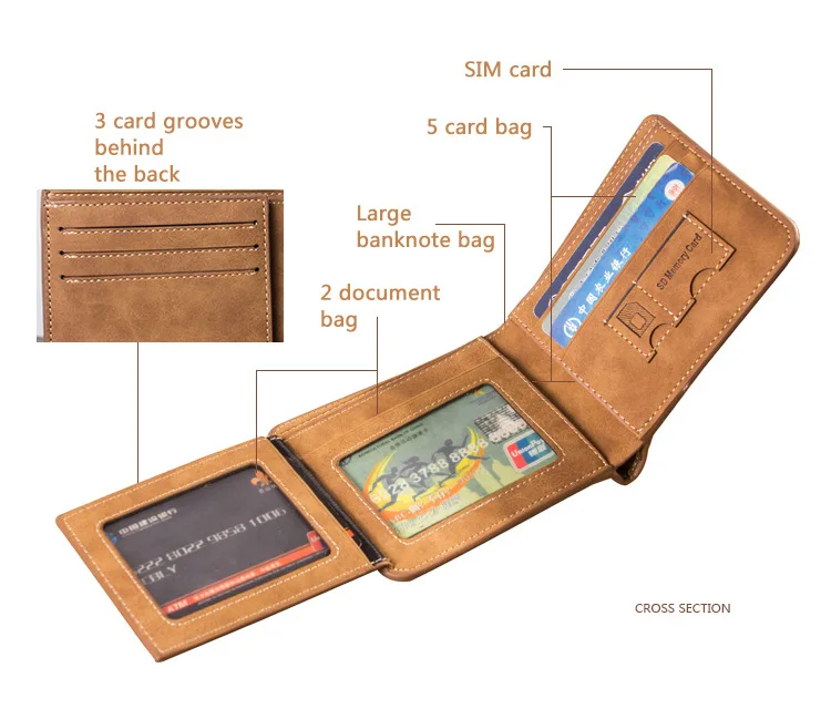 Новый мужской кожаный двойной кошелек, тонкий хипстерский бумажник ...