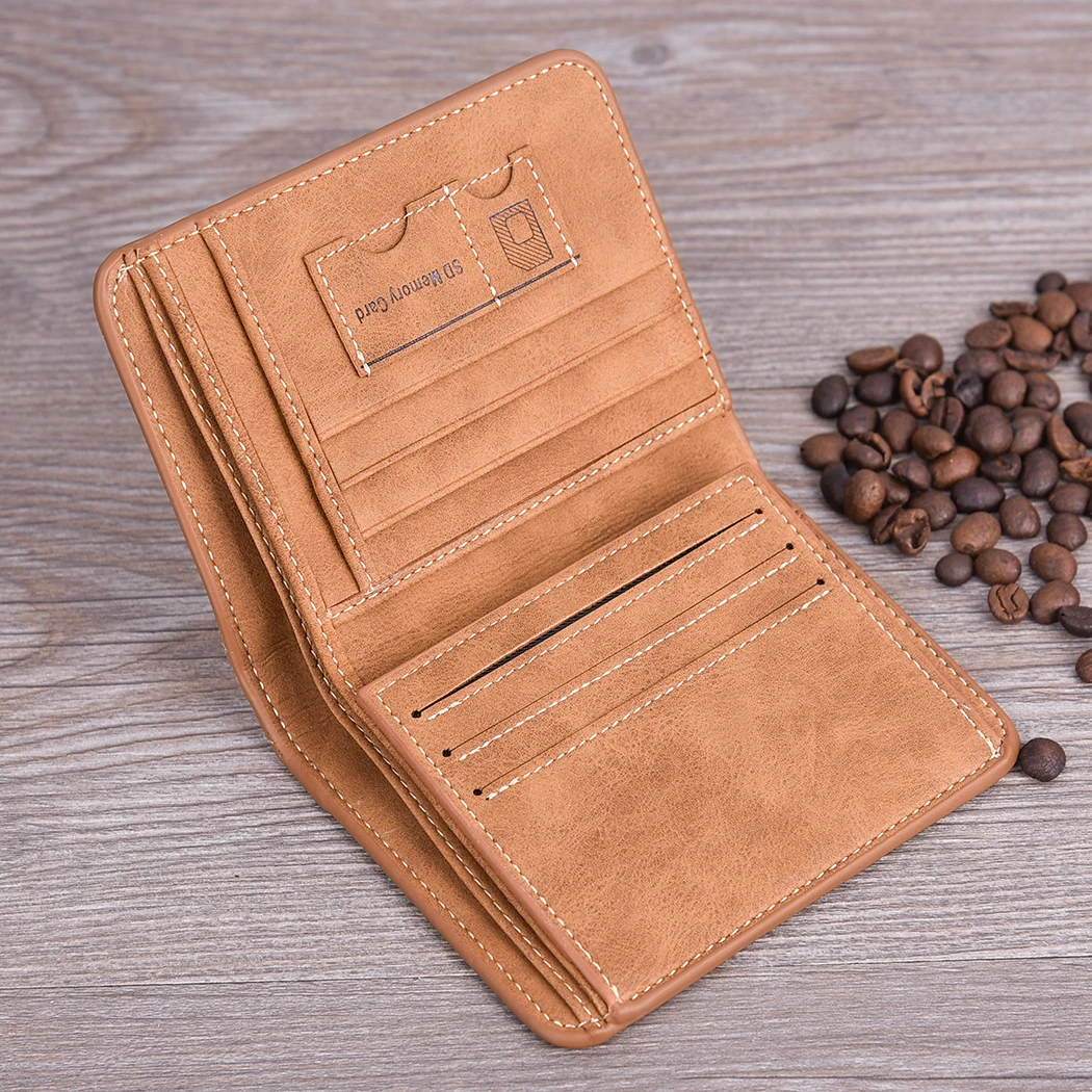 Кошелек мужской короткий из матовой кожи, бумажник в стиле ретро тройного сложения с зажимом для денег и несколькими отделениями для карт