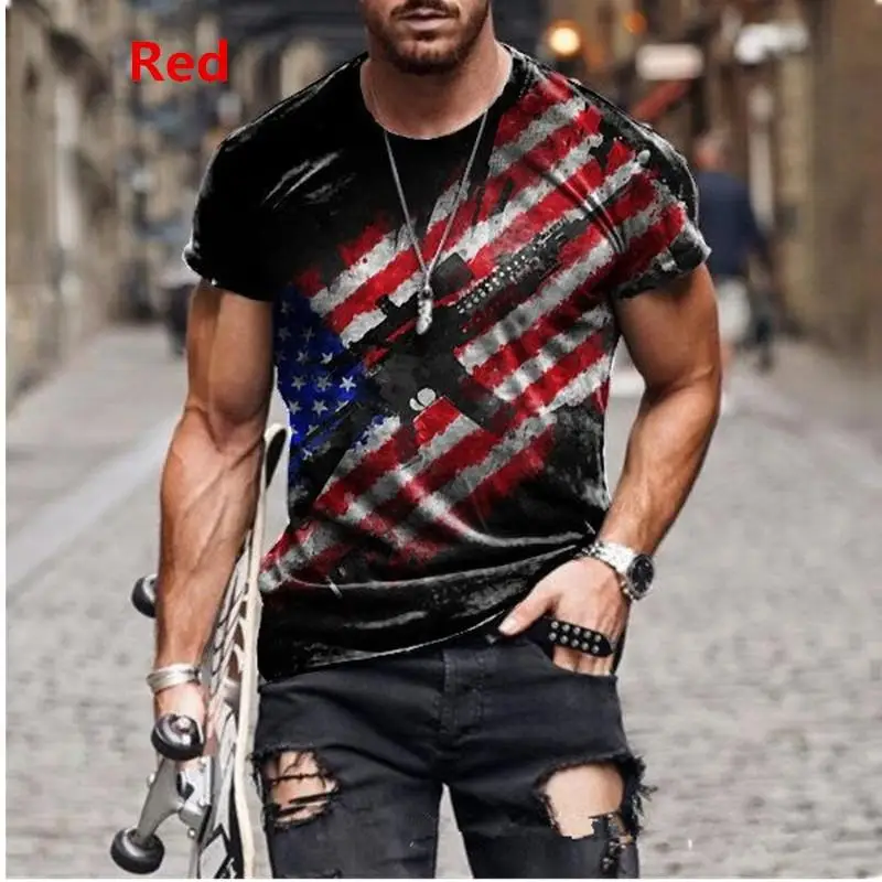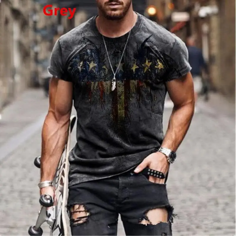Мужская футболка с круглым вырезом, свободная дышащая уличная футболка в стиле ретро, с 3D-принтом флага, лето 2021