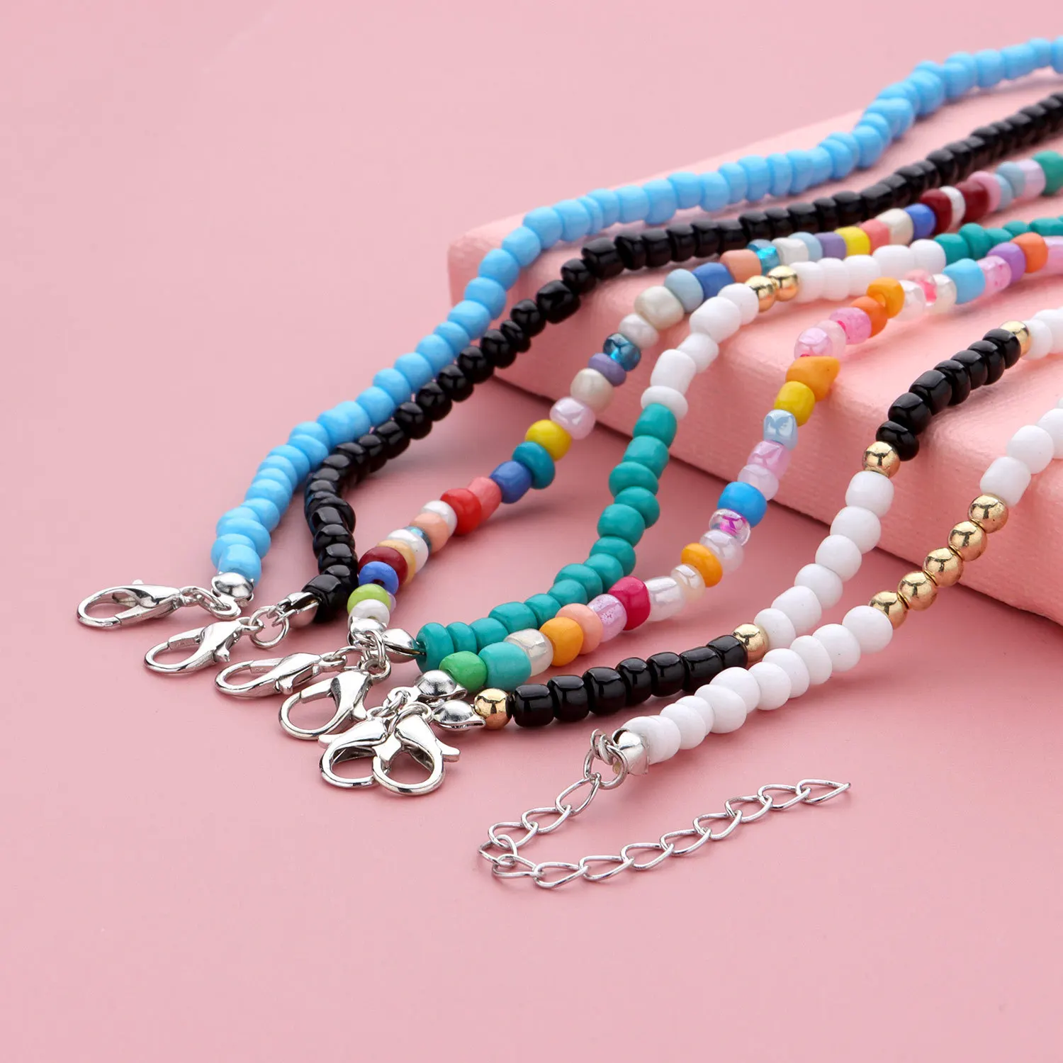 Браслеты-анклеты женские с бусинами радужного цвета, регулируемые ювелирные украшения для ног, ручная работа