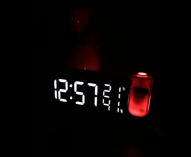 Часы имеют проекцию, которая проецирует время на потолке, что очень удобно! Часы не слишком толстые или не слишком тонкие, просто идеальный размер. Он также имеет функцию, чтобы показать температуру комнаты и влажность. Вы также можете установить ночной режим, чтобы яркость не была яркой, когда вы пытайтесь спать. Цифры на часах также большие и легко читаются.