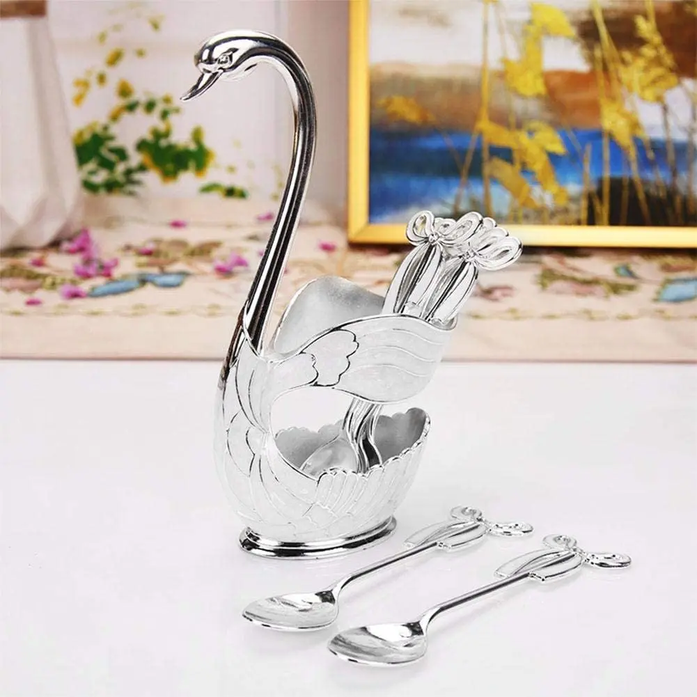 6 шт лебедь вилка, кофейная ложка держатель полые украшения дома фруктовый десерт гостиная кухонная посуда