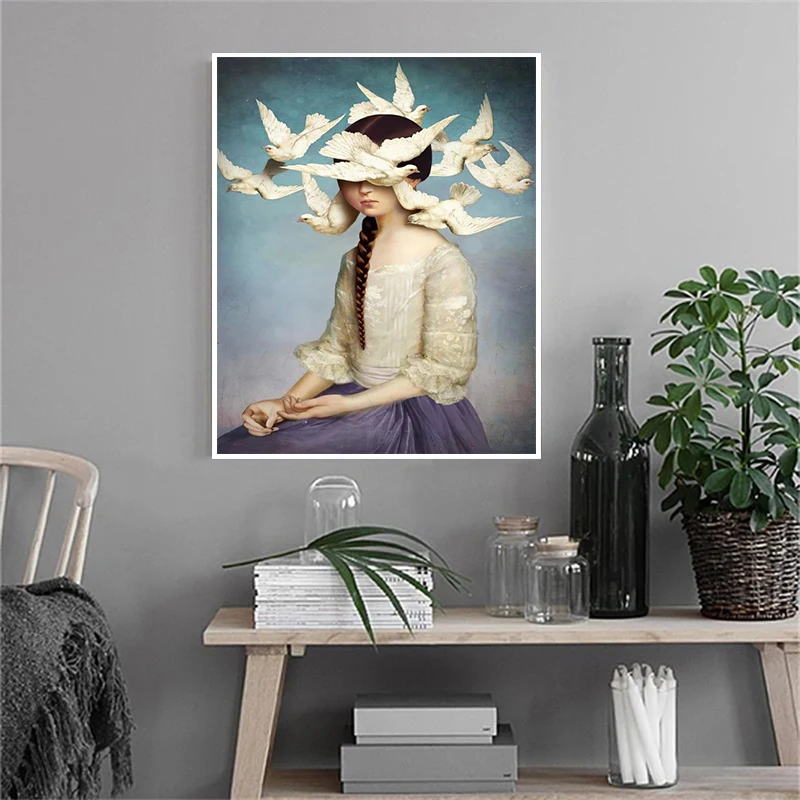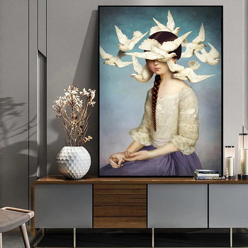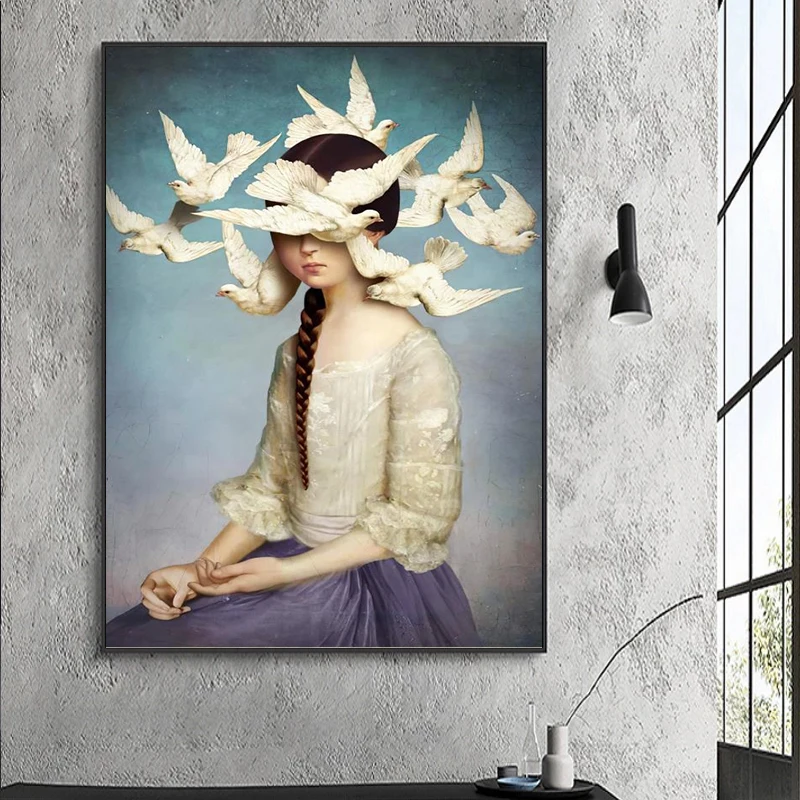 Классическая картина маслом в стиле ретро, Картина на холсте с изображением девушки из отсутствующей мечты, половинная картина с изображением птицы мира, декор для стен