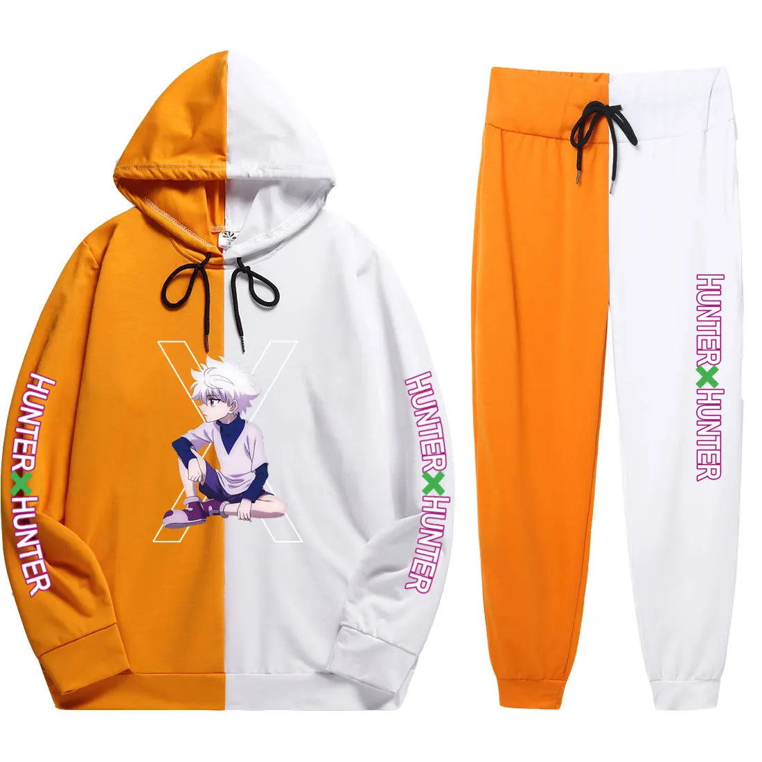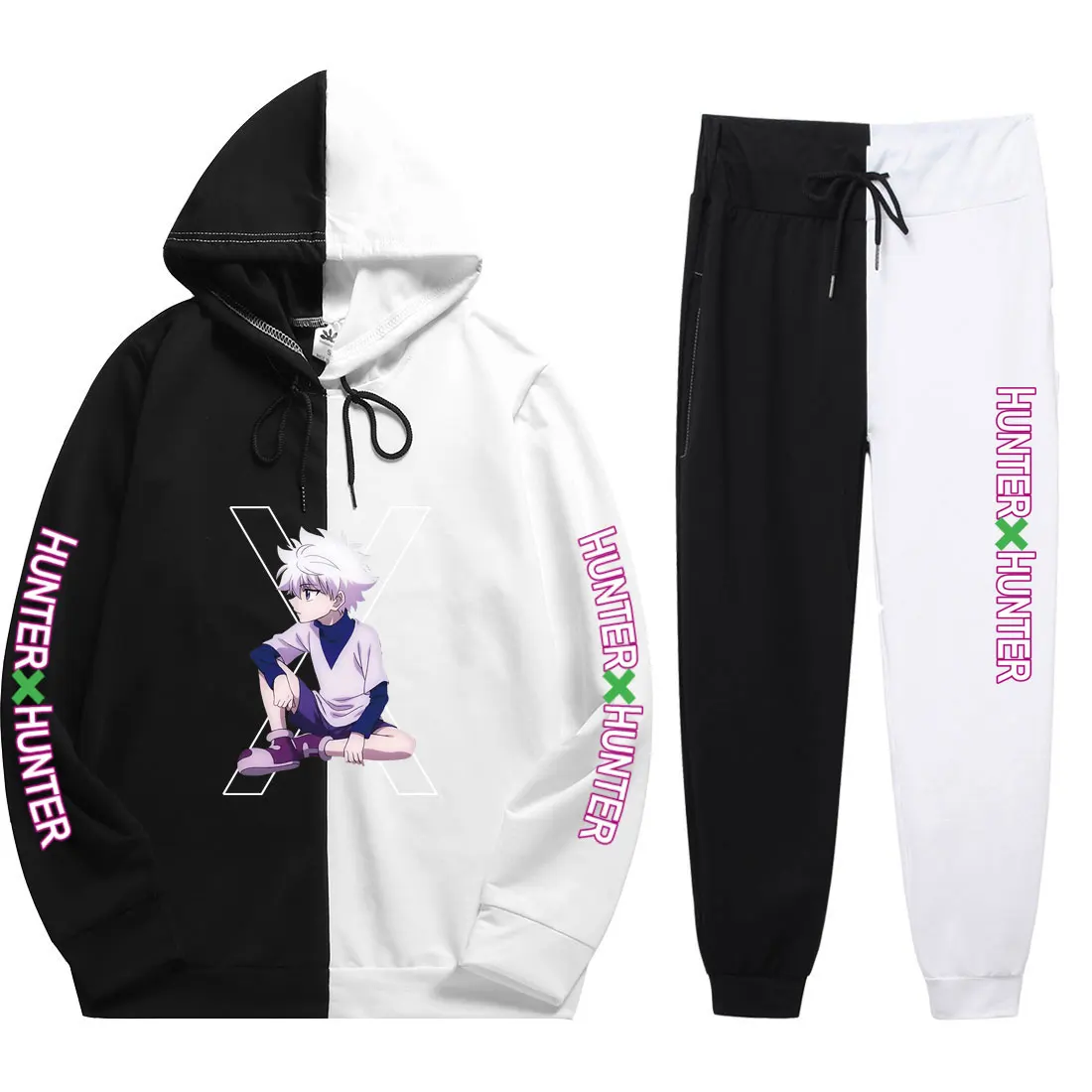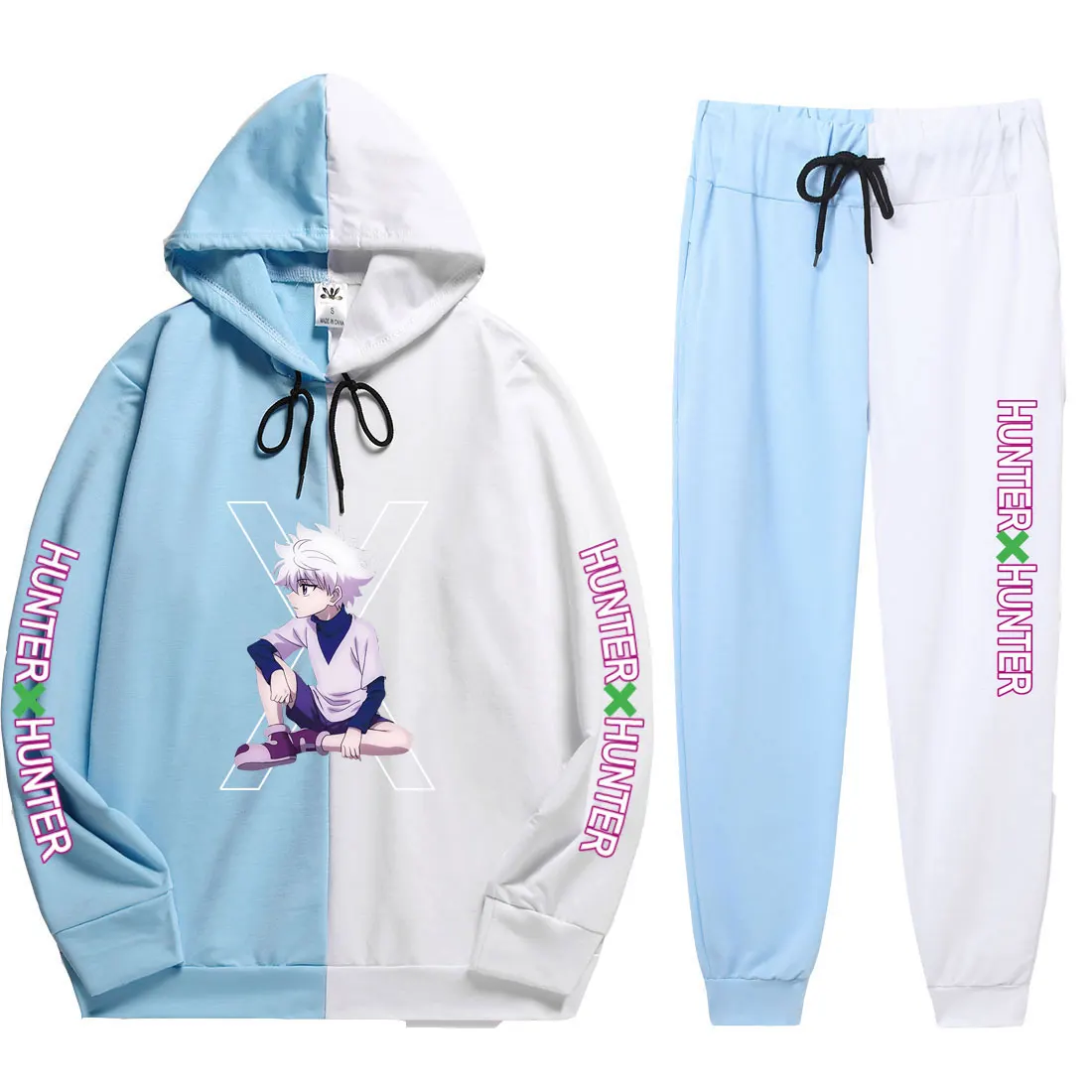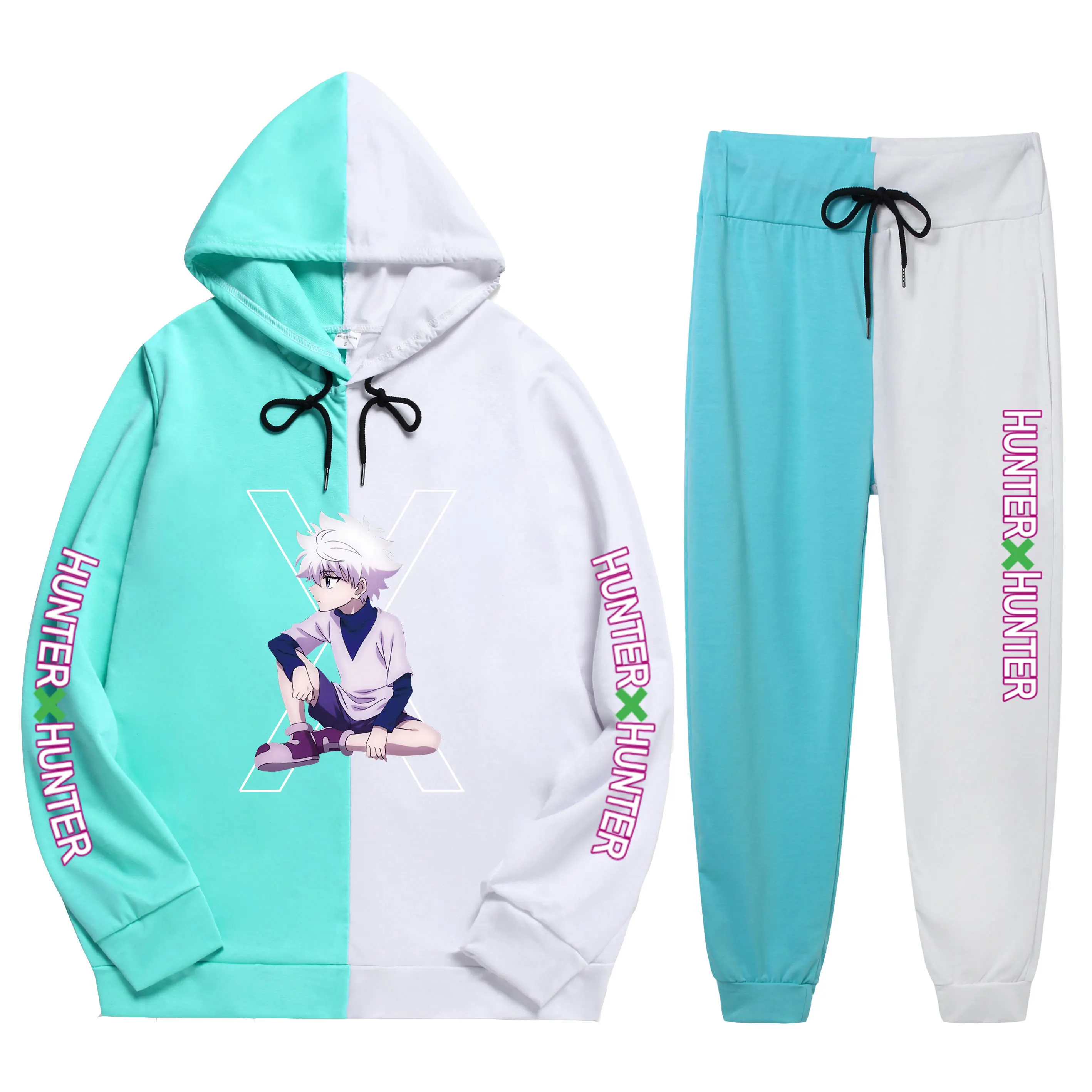Комплект одежды унисекс из 2 предметов аниме Killua Hunter X Hunter Harajuku с принтом в стиле пэчворк тонкая толстовка + Лоскутные Брюки Повседневная летняя одежда