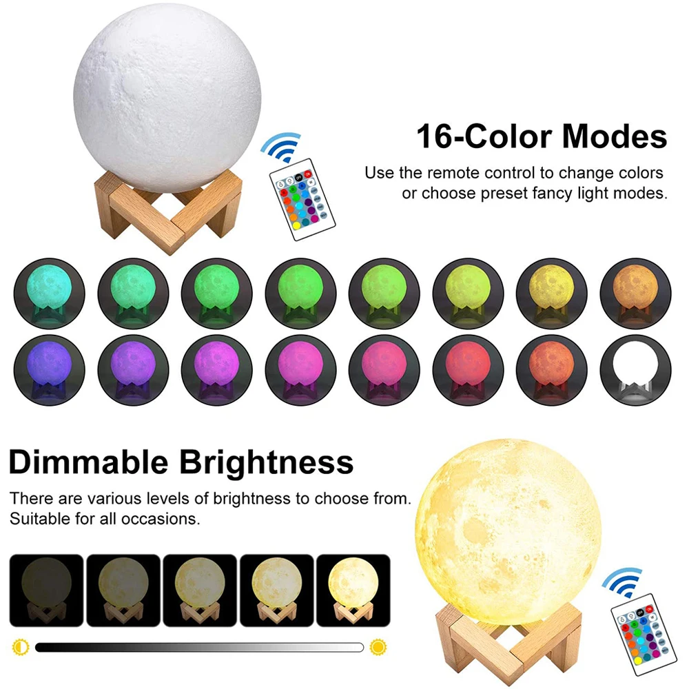 Feature 43D Print Moon Lights
