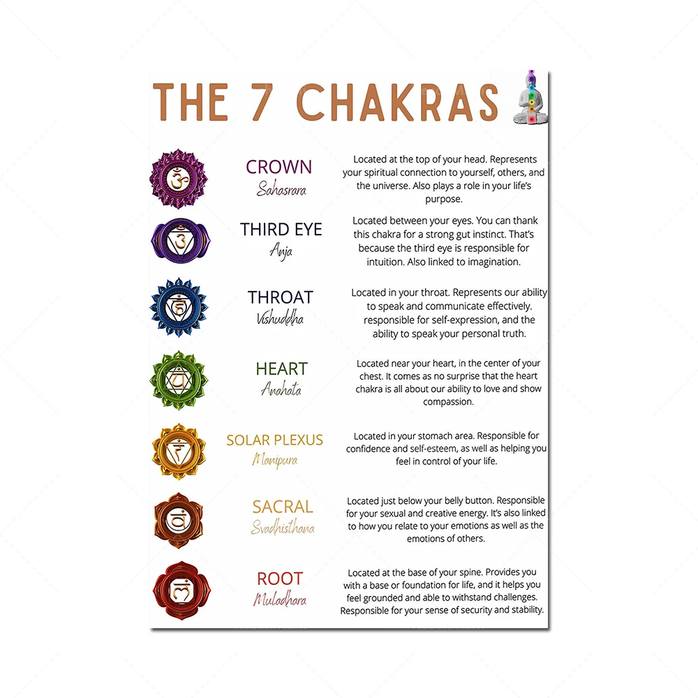 7 плакаты с знаниями о чакрахлучшие подарки для любителей йогиПлакаты для медитациипостеры для занятий искусством на особой сторонедля медитации