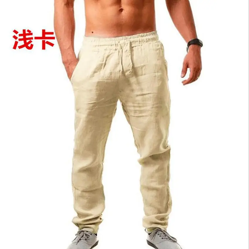Брюки мужские из хлопка и льна, свободные однотонные брюки-султанки с эластичной резинкой на талии, бриджи, большие размеры, весна-лето