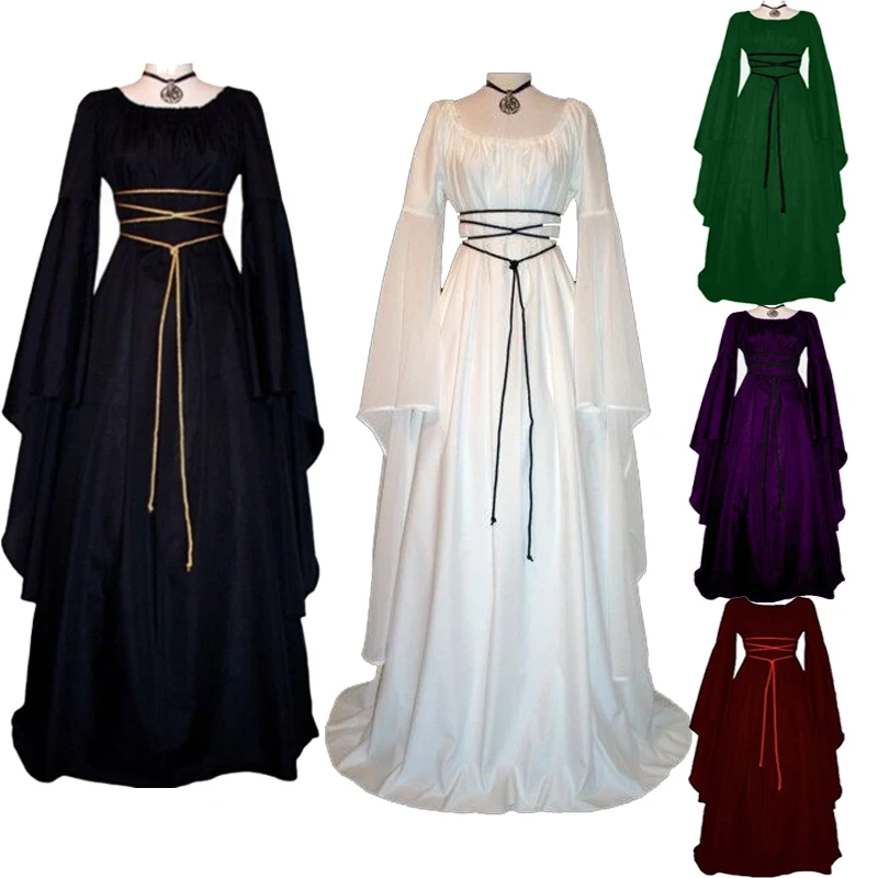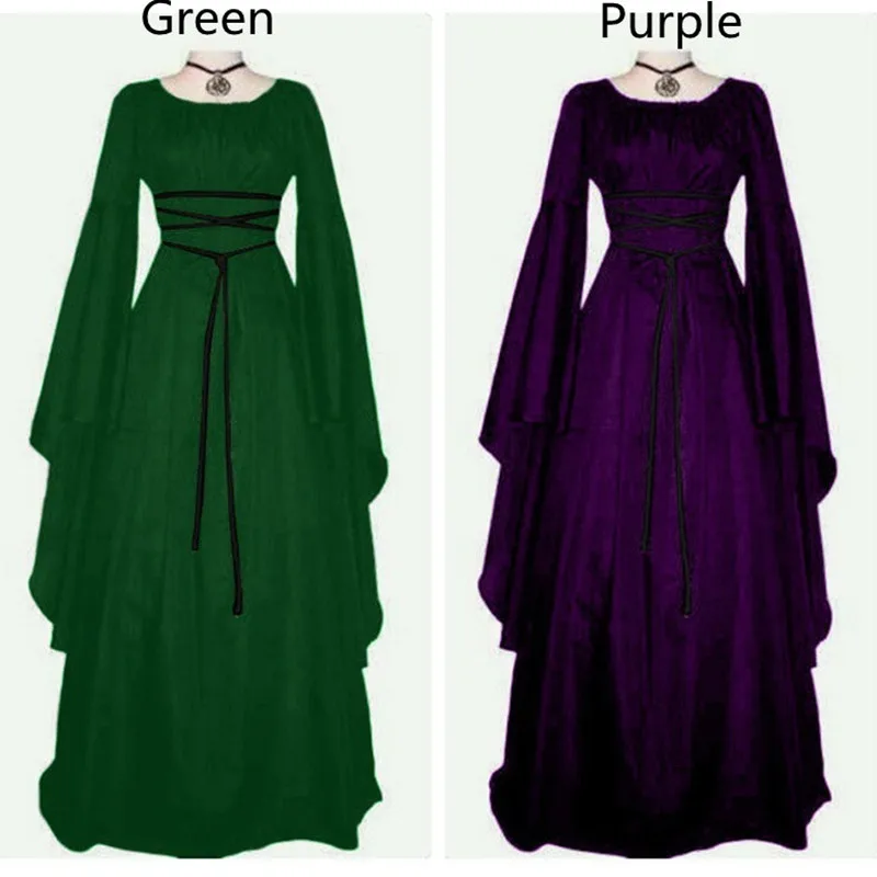 6 цветов, женское модное винтажное Стильное женское средневековое платье, готическое платье в пол, женское платье для косплея, Ретро длинное платье