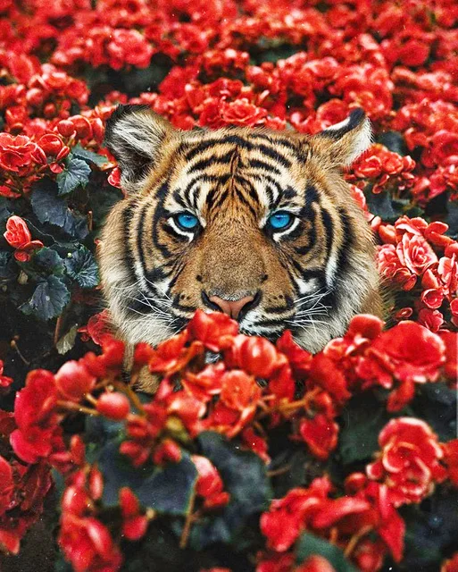 Алмазный Набор для вышивки с цветочным принтом и изображением тигра, рисунок с животными, рисунки для вышивки бисером алмазная живопись растения с яркими стразами художественные подарки для детей