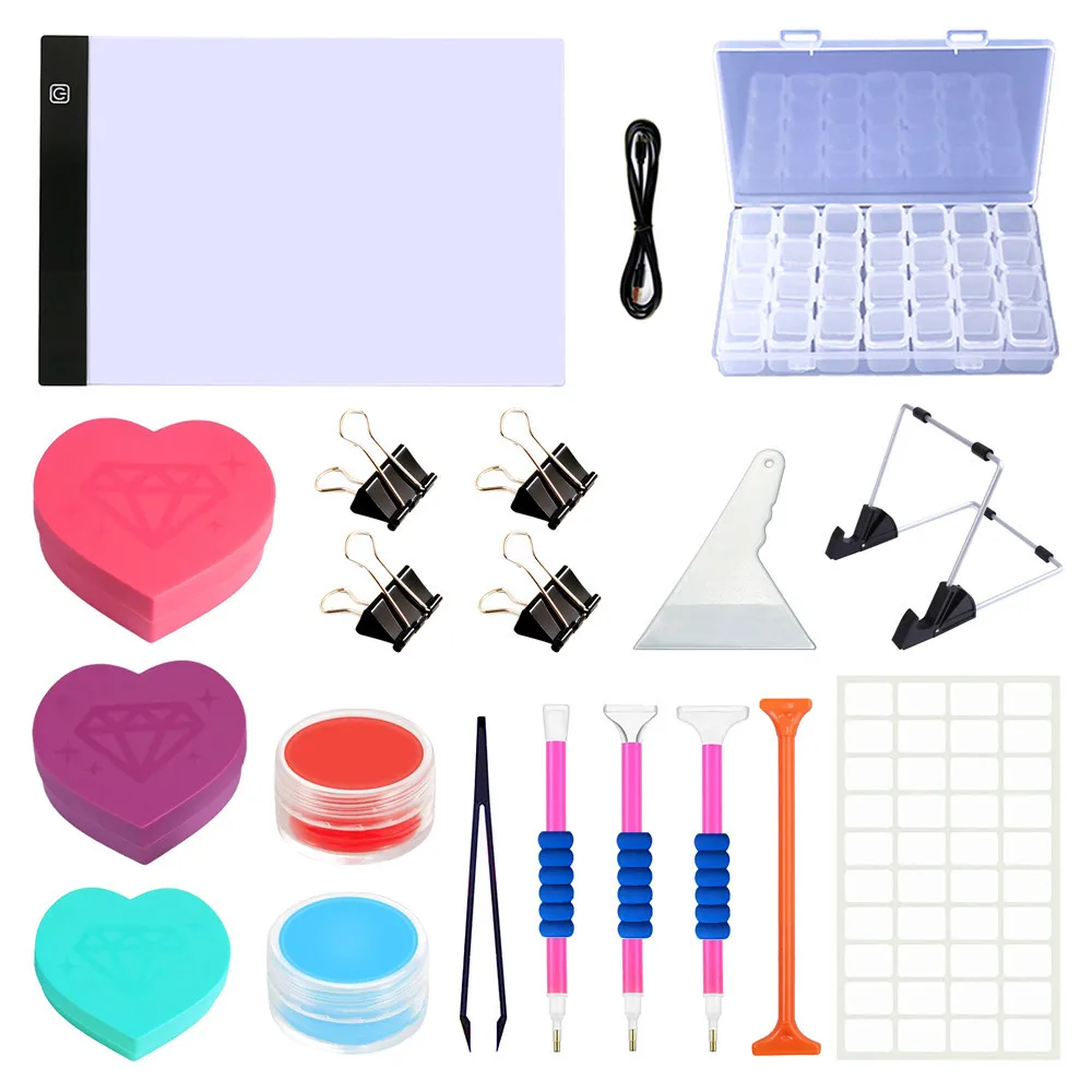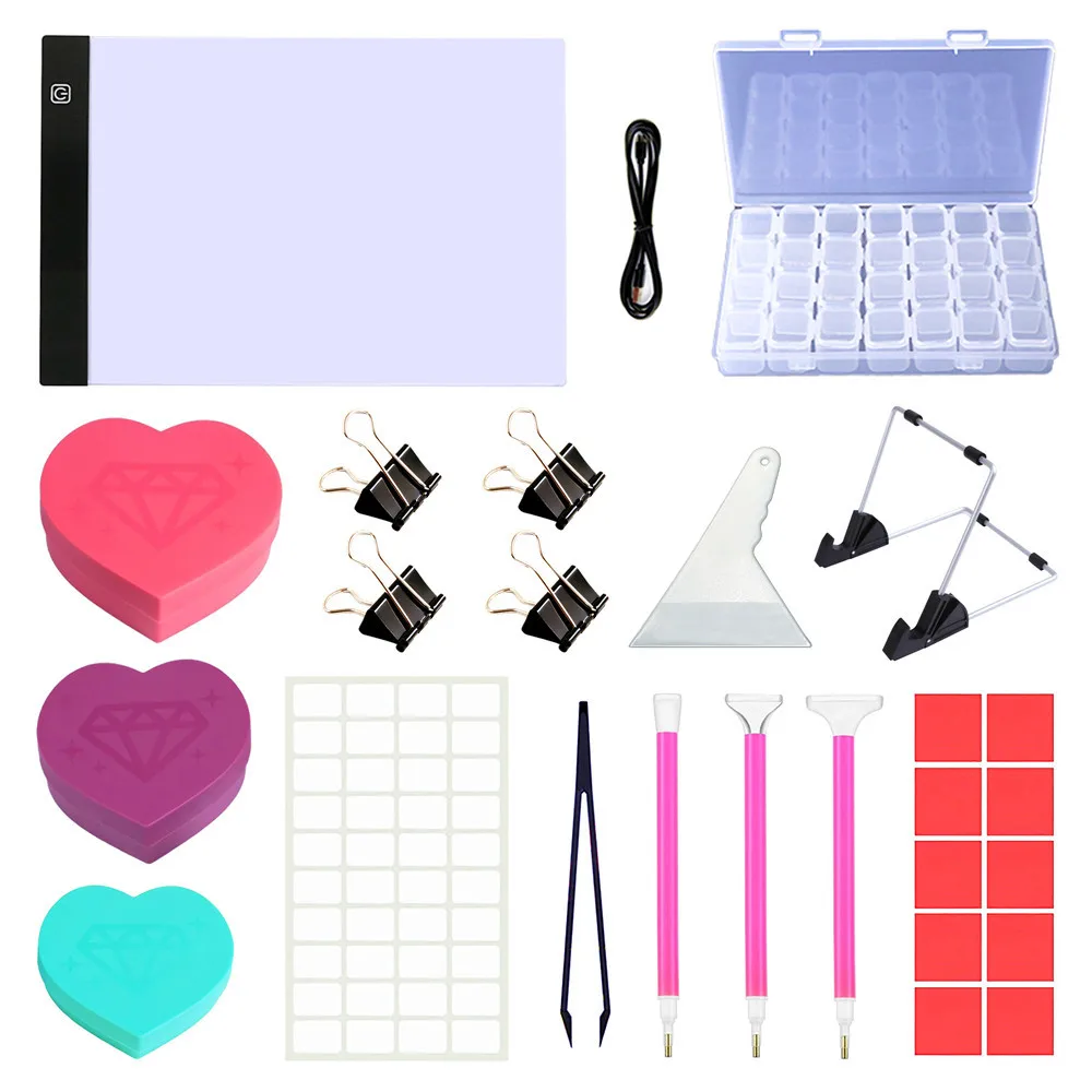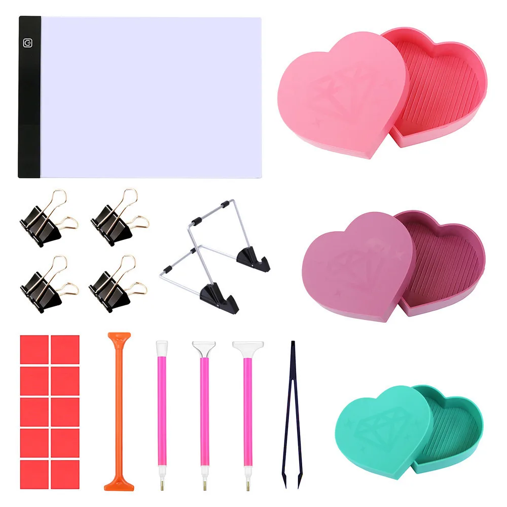 DIY алмазная живопись инструмента копия NAND Flash стол и в форме сердца точка лоток коробка комплект A4 светодиодный освещение Pad алмазов картина Аксессуары для инструментов