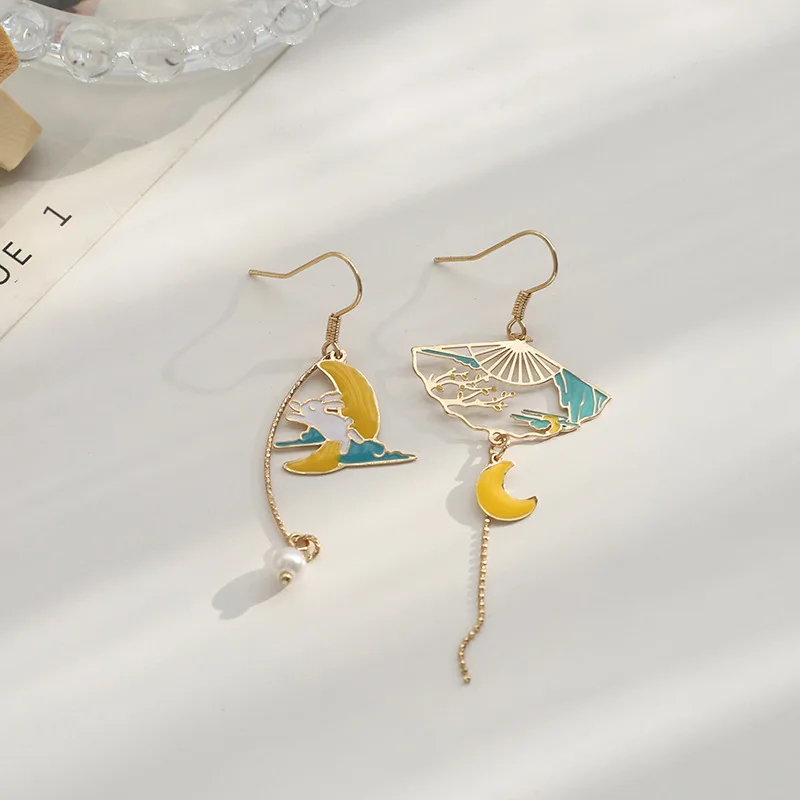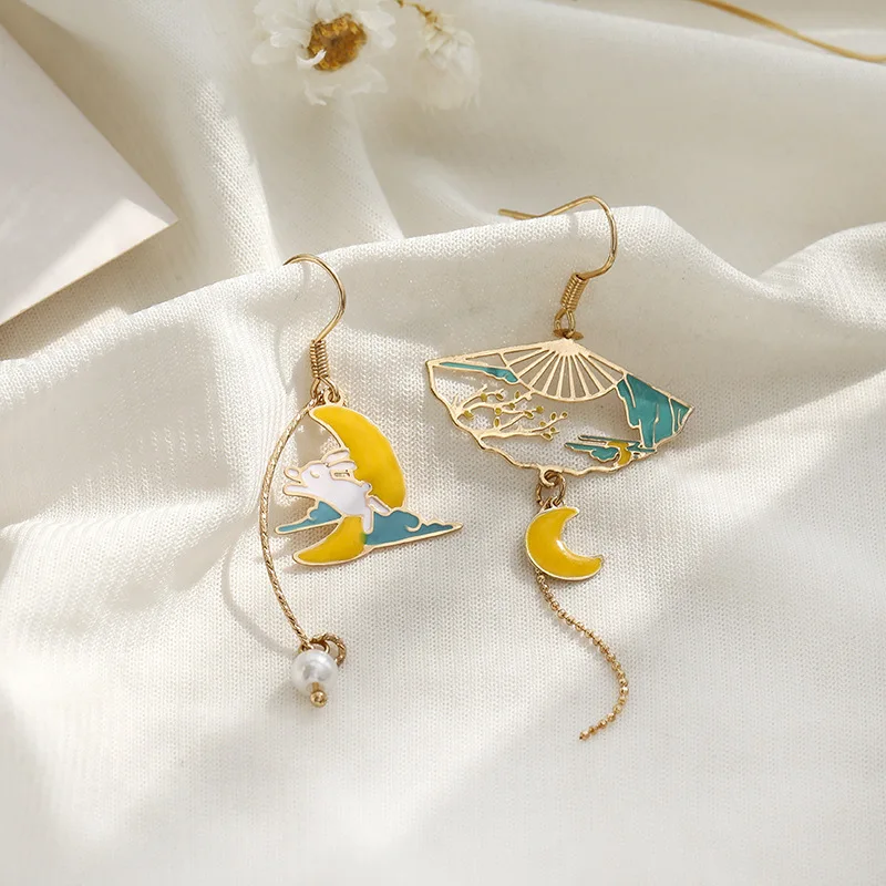 Новый стиль Асимметричный, свисающие серьги для женщин, серьги милая кошка, кролик с изображением Луны и звезд, геометрические серьги на крючках сладкий подарок для девочек ювелирные изделия