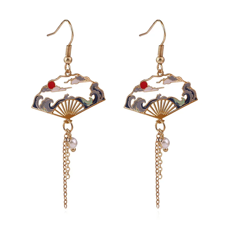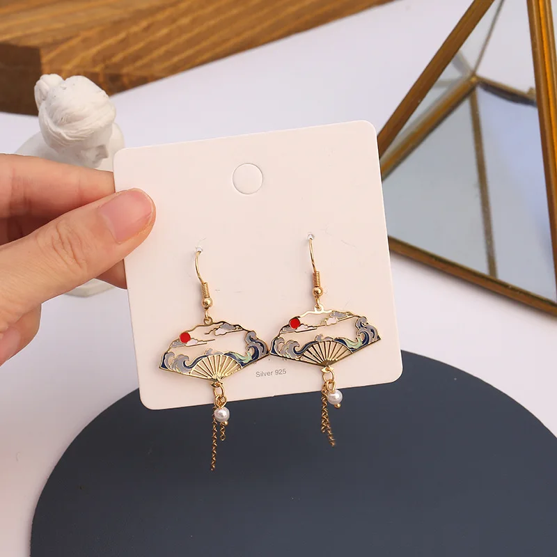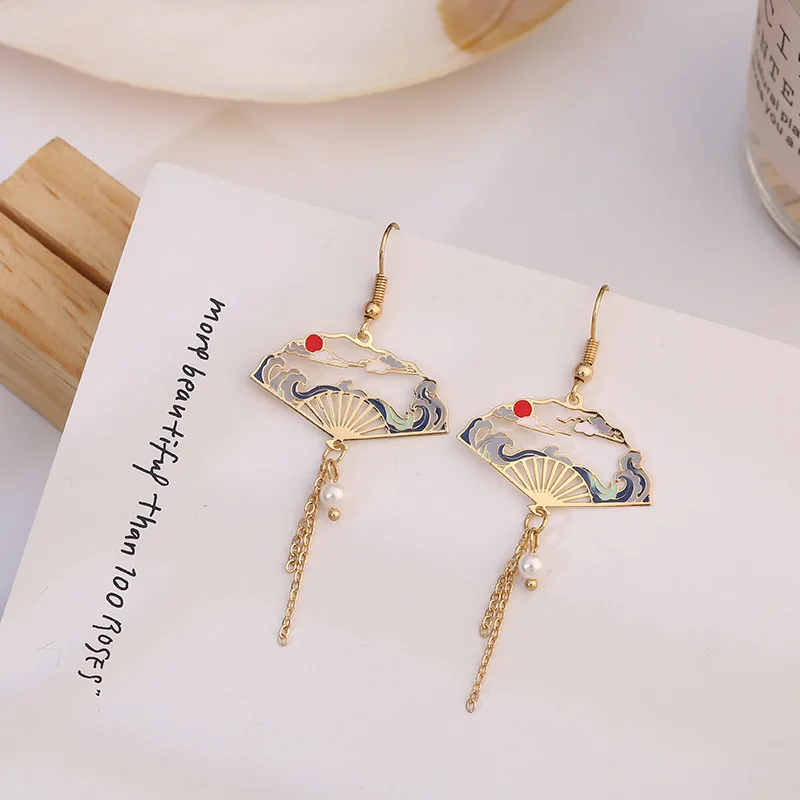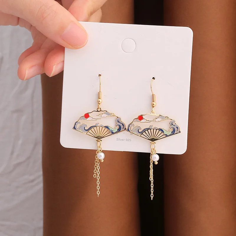 Висячие серьги Vinatge, в китайском стиле, складные, веерные, с жур...