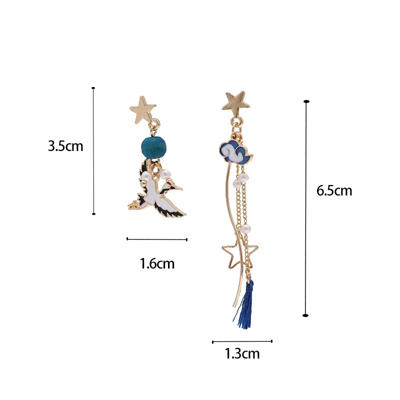 Складные веерные висячие серьги в китайском стиле с журавлем облако...