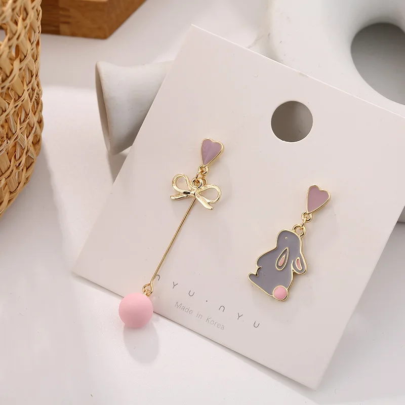 Женские Висячие серьги, корейский стиль, милая кошка, Кролик Год, звезда, луна, асимметричные, ювелирные изделия