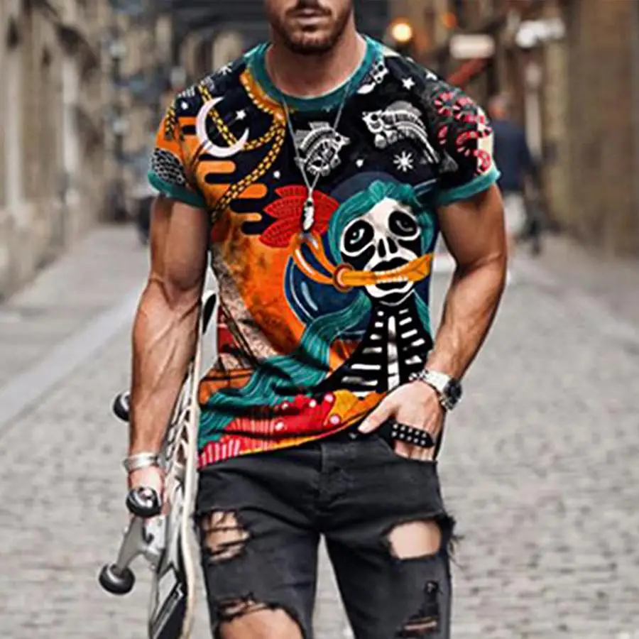 Лидер продаж 2021, новая модная мужская футболка в стиле ретро, повседневная женская футболка с цветным 3D принтом, уличная футболка с круглым вырезом и коротким рукавом