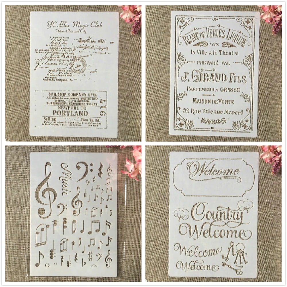 4 шт. A4 29 см в виде скрипичного ключа, французский почтой DIY наслоения Трафареты настенная живопись раскраска для скрапбукинга тиснильный альбом декоративные шаблон
