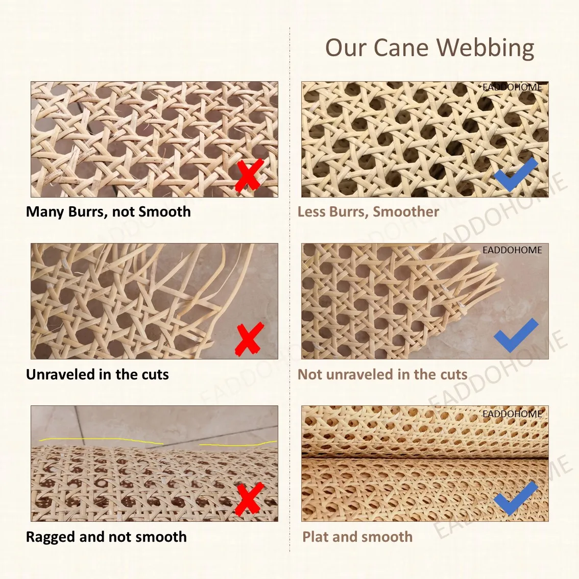 Eaddohome тростниковая тесьма может использоваться на стульях, столах, шкафчиках, шкафчиках, буфетах, сервантах, кроватях, столах и так далее.