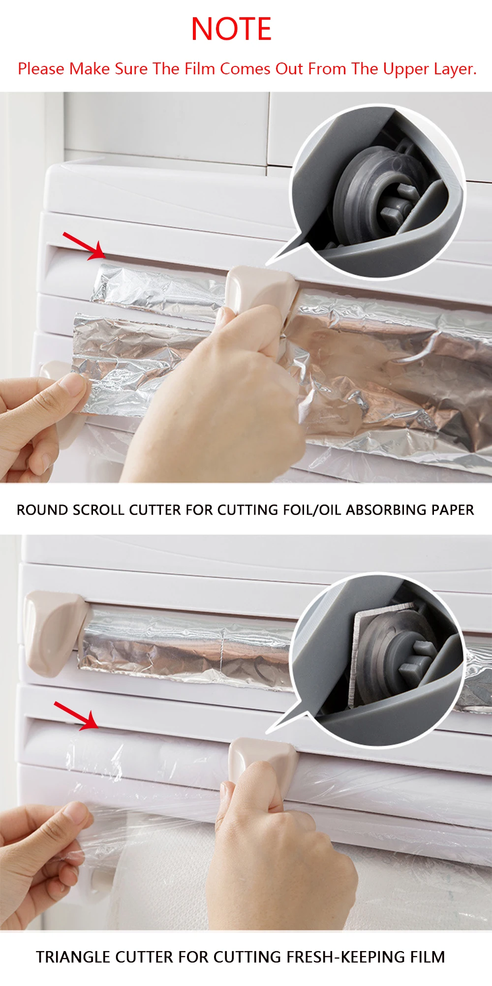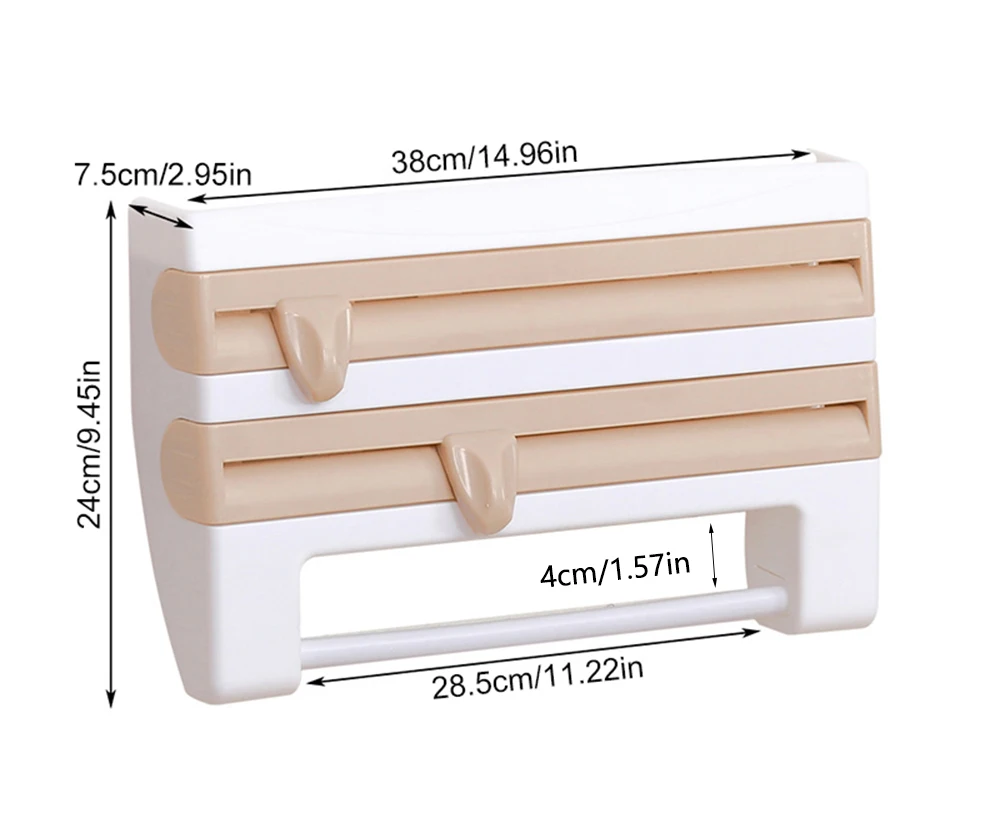 -Идеально подходит для пластиковой пленки, алюминиевой фольги и вощеной бумаги.-Держатель для бумажных полотенец со встроенными диспенсерами для пластиковой упаковки и алюминиевой фольги.-Поставляется с лезвиями для обеспечения чистого резания для быстрого дозирования и приготовления/хранения еды.-Обеспечивает легкий доступ к кухонным принадлежностям.