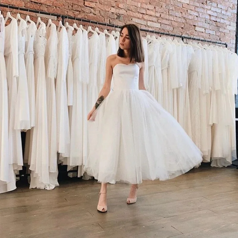 Простое свадебное платье длиной до середины икры, Пляжное свадебное...