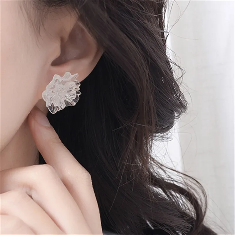 Корейские модные серьги-гвоздики в виде других берегов, Женские аксессуары, прозрачный белый Снежный Лотос, фотоаксессуары для женщин