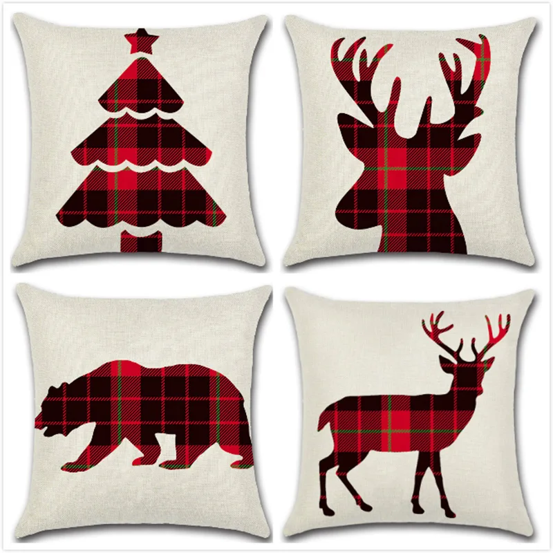 Рождественская подушка крышка в красную клетку, накидка для подушки оленей наволочка с оленем вапити размером 45*45 см диван рождественские украшения для дома автомобиля Fundas Cojines