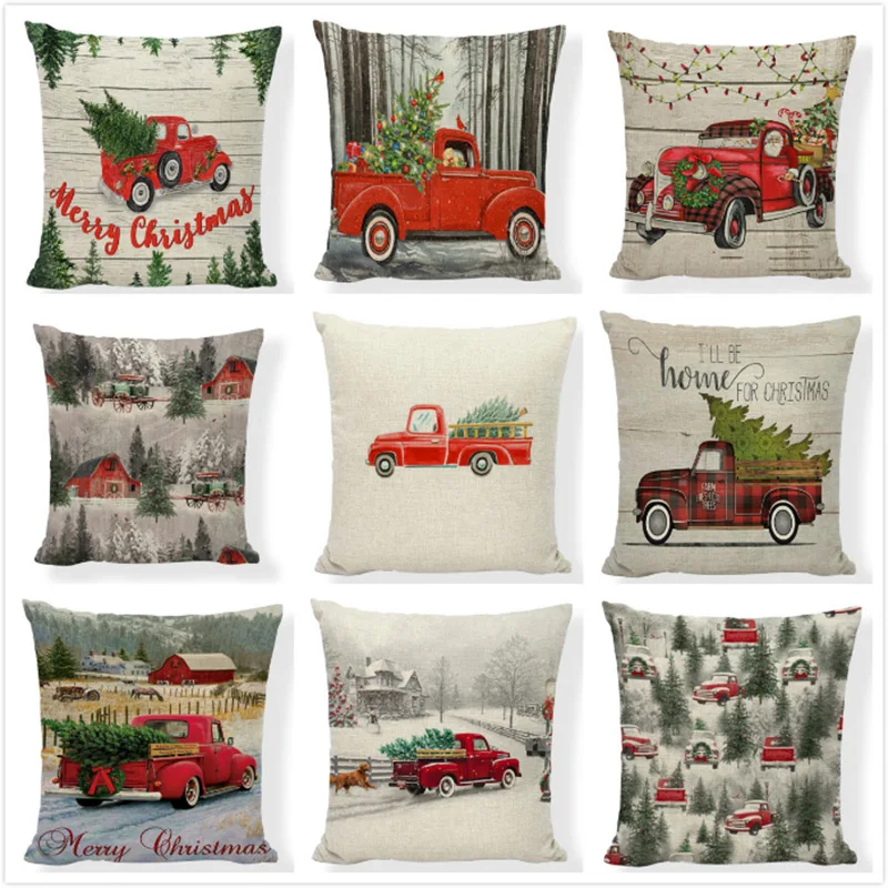 Рождественская наволочка, красная наволочка для подушки для грузовика, украшение для рождественской елки, наволочки для семейной гостиной, стула, новый год, Размеры s 45x45 см
