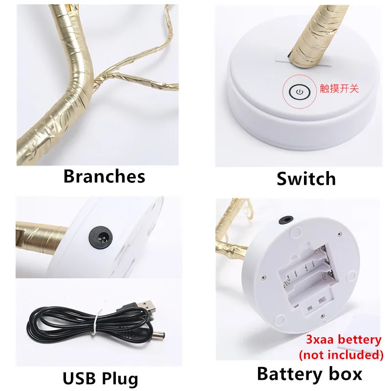 Количество СВЕТОДИОДНЫЙ светильник: 108 светодиодный S (светильник огненного дерева)/36 светодиодный S (светильник жемчужного дерева)/72 светодиодный s (светильник золотого листа)/36 светодиодный S (жемчуг + светильник с золотым листом)/36 светодиодный S (светильник с цветком сливы) Материал: пластик + медная проволока Наименование товара: светильник с рождественской елкой Источник питания: USB DC5V + аккумулятор 3xAA 1,5 V Переключатель: Сенсорный Высота: 45-50 см Диаметр основания: 12 см Световой поток: 1000 (лм) Размер продукта: базовый 12 см и базовый переключатель-это сенсорный тип, который является более высококачественной атмосферой.