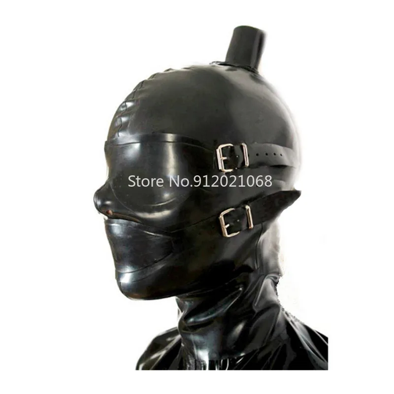 Латексный капюшон ручной работы, прикрепленный мундштук и трубка дл...