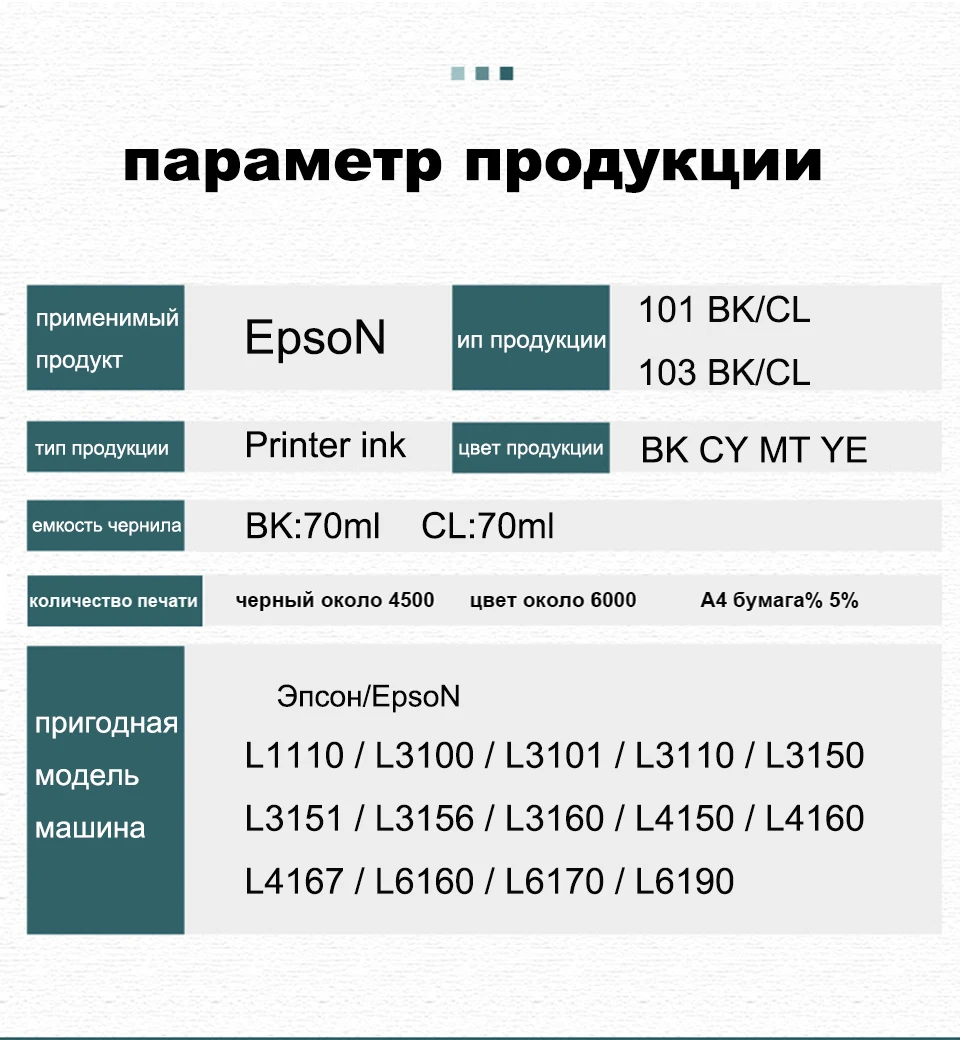 Номер моделиFor Epson L1110 L3100 L3101 L3110 L3150 L3151 L3156 L3160 L4150 L4160